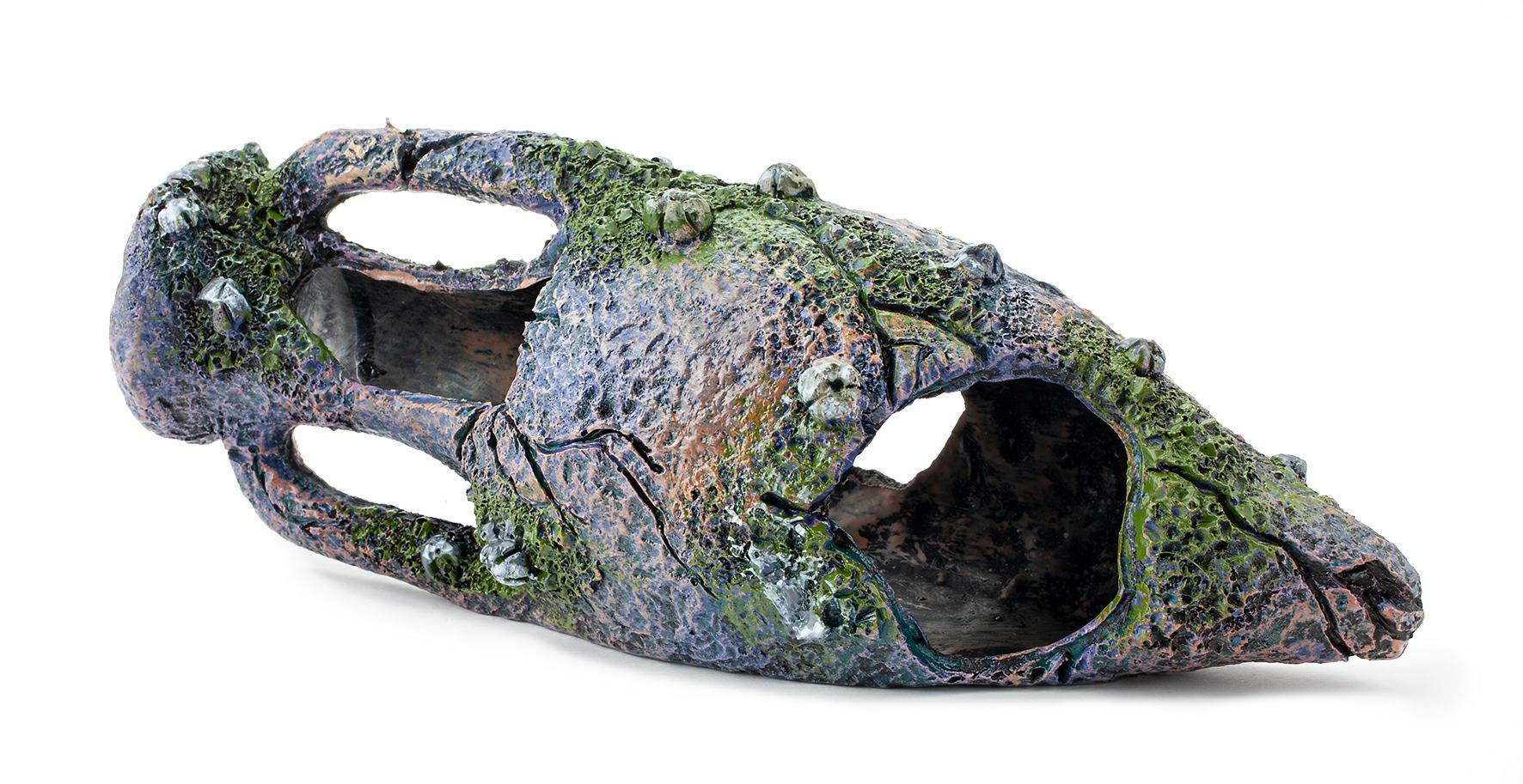 Ozdoba akwariowa wykonana z łatwo tonącego i bezpiecznego dla ryb, oraz innych zwierząt wodnych, poliestru.