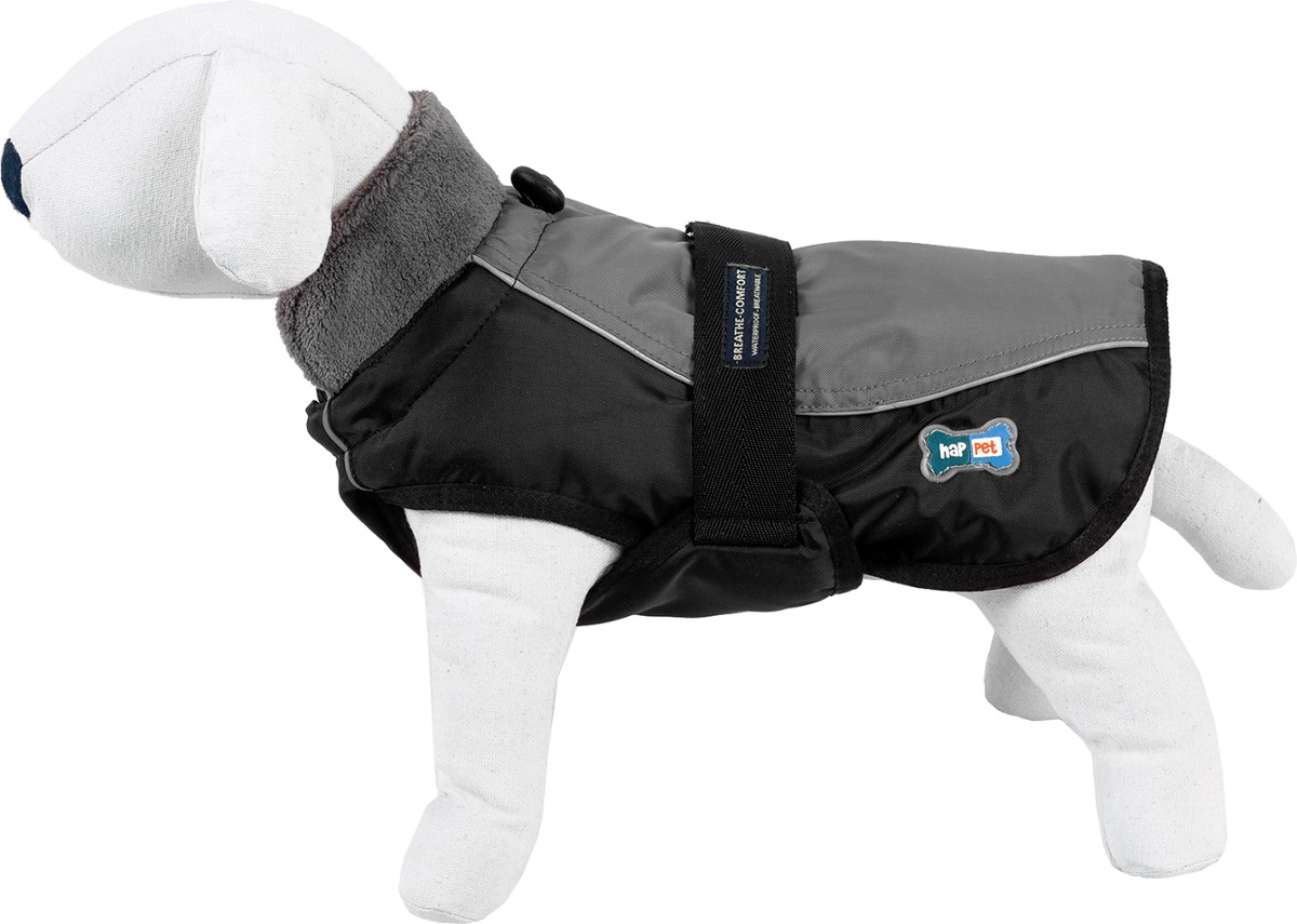 Zimowe ubranko dla psa wspomoże naszego pupila warstwą oddychającego, trzymającego ciepło materiału. Kształt płaszcza zapewnia okrycie najbardziej narażonych na zimno części ciała, nie krępując przy tym ruchów zwierzęcia. Dodatkowo materiał jest wodoodporny i można prać go w pralce w temperaturze 30 stopni. Dostępne są kolory i rozmiary: jasnoniebieski (XS-25cm, XS-30cm, S-40cm), bordowy (XS-30cm, S-40cm, M-50cm), szary (XS-25cm, XS-30cm, S-40cm, M-50cm).
