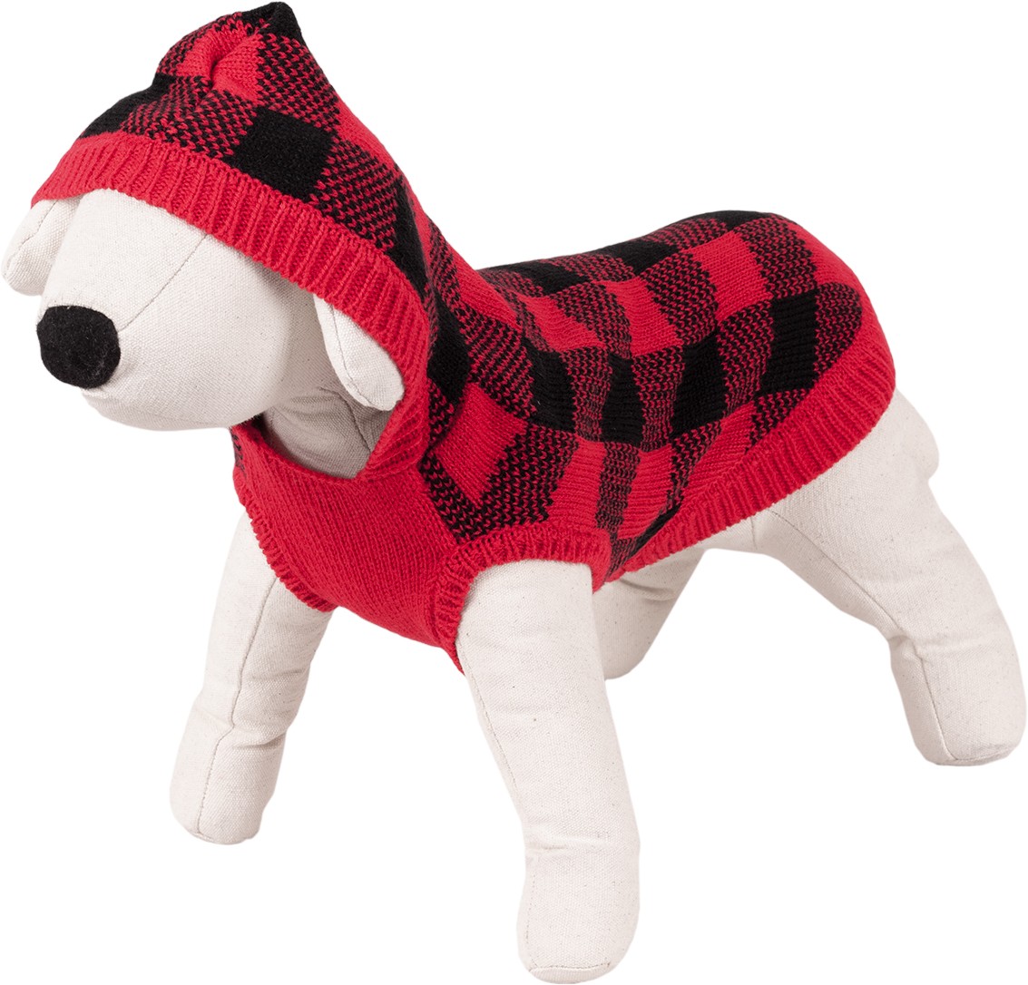 Lekki i ciepły sweterek w modną czerwono-czarną kratę. Wykonany z miękkiego materiału zapewniającego psu komfort i wygodę noszenia. Krój idealnie dopasowany do sylwetki oraz kaptur gwarantują doskonałą ochronę przed chłodem w okresie jesienno-zimowym. Długość grzbietu 25cm.
