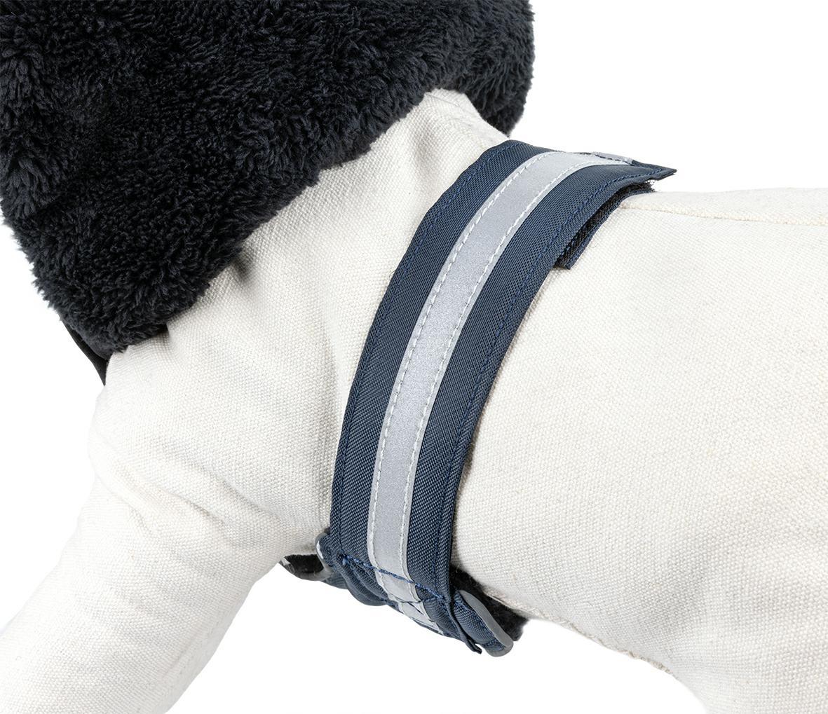 Okrycie dla psa z miękkim kołnierzem wspomoże naszego pupila warstwą oddychającego, trzymającego ciepło materiału. Jego rozłożysty kształt i wysunięty szeroki dwuwarstwowy kołnierz pozwalają na ochronę jak największej powierzchni ciała psa, bez niepotrzebnego krępowania ruchów. Ubranko łatwo zapina się paskami na rzepy, które umieszczone są na klatce piersiowej psa. Dodatkowo, materiał z którego zostało wykonane jest wodoodporne i można prać je w pralce w temperaturze 30 stopni. Dostępne są rozmiary XS (25cm), XS (30cm), S (40cm), M (50cm), L (60cm) oraz kolory ciemnoróżowy i granatowy.