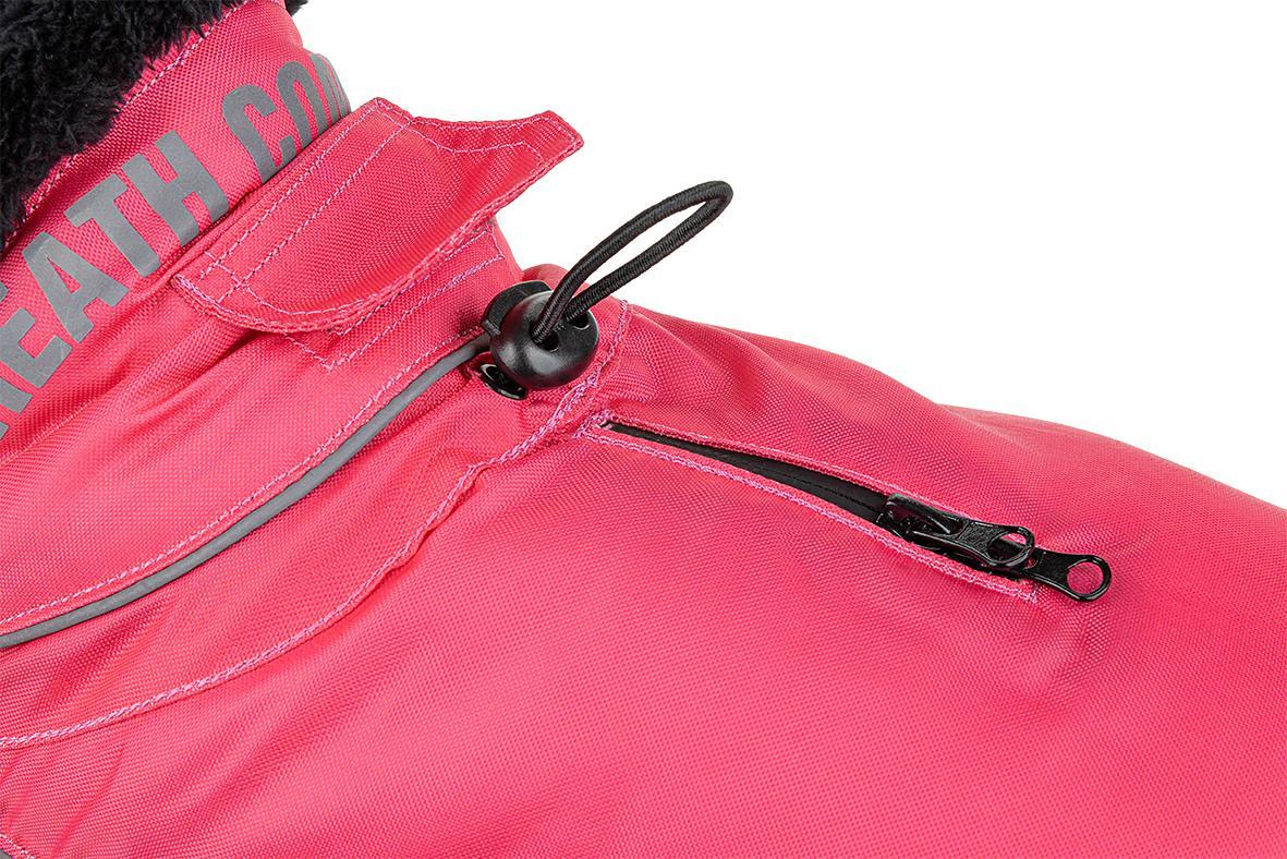 Okrycie dla psa z miękkim kołnierzem wspomoże naszego pupila warstwą oddychającego, trzymającego ciepło materiału. Jego rozłożysty kształt i wysunięty szeroki dwuwarstwowy kołnierz pozwalają na ochronę jak największej powierzchni ciała psa, bez niepotrzebnego krępowania ruchów. Ubranko łatwo zapina się paskami na rzepy, które umieszczone są na klatce piersiowej psa. Dodatkowo, materiał z którego zostało wykonane jest wodoodporne i można prać je w pralce w temperaturze 30 stopni. Dostępne są rozmiary XS (25cm), XS (30cm), S (40cm), M (50cm), L (60cm) oraz kolory ciemnoróżowy i granatowy.