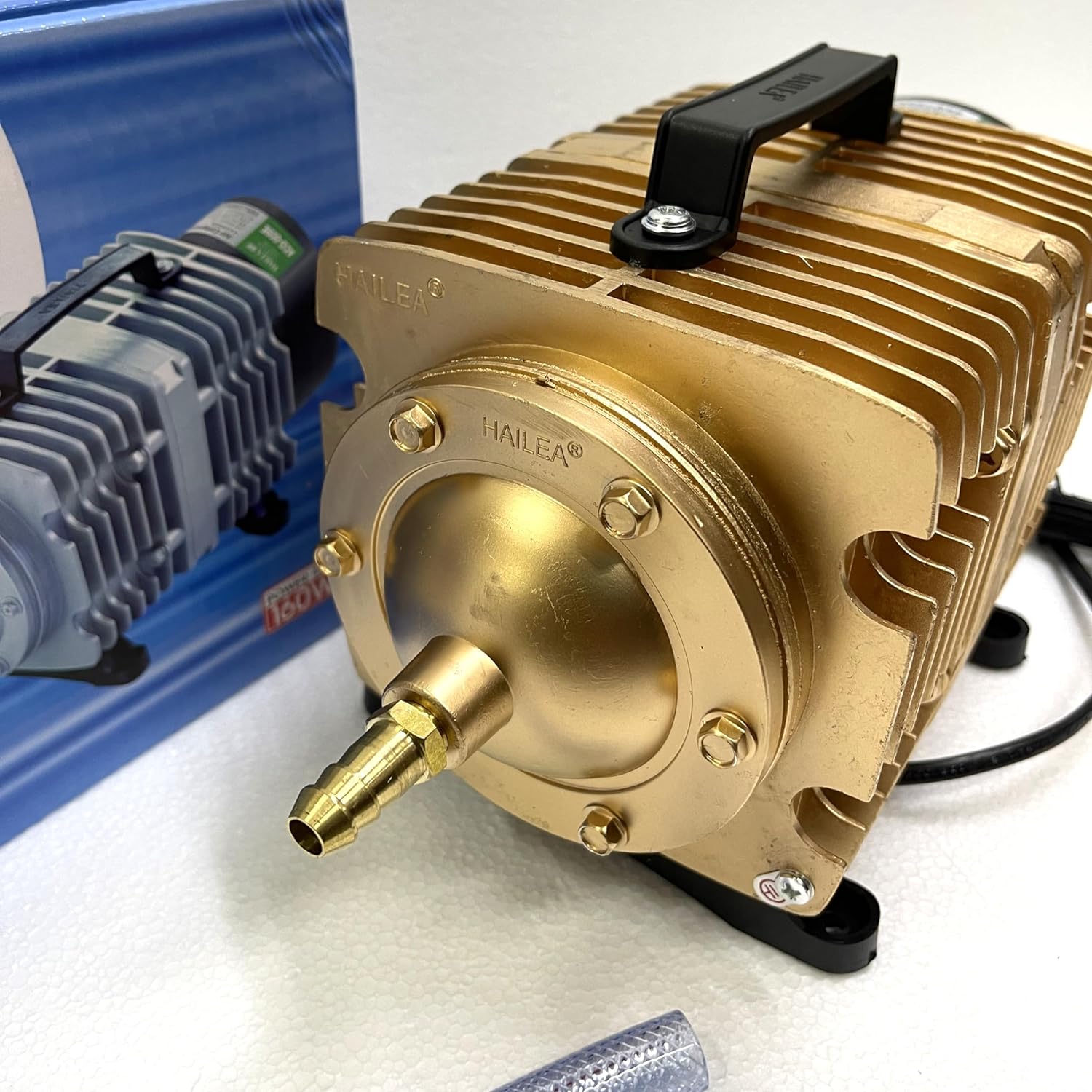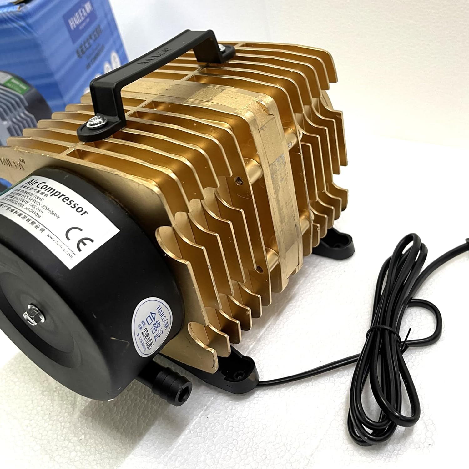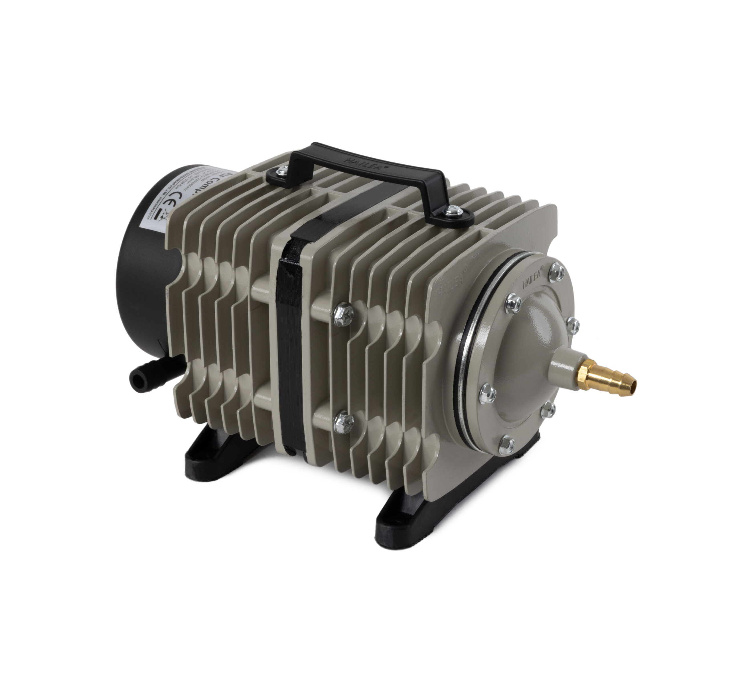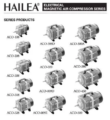 Charakteryzuje się wysoką wydajnością i dużą mocą sprężania, co umożliwia efektywną pracę nawet na dużych głębokościach. Żaden z elementów pompy nie jest oliwiony więc tłoczone powietrze jest czyste i bezpieczne dla organizmów wodnych. Korpus z radiatorem wykonany ze stopu aluminium ZL102, dzięki czemu urządzenie nie przegrzewa się i może pracować nieustannie bez wahań wydajności. Obudowa posiada uchwyt ułatwiający przenoszenie urządzenia. Przekładnia elektromagnetyczna zapewnia wstrzykiwanie powietrza przez bezpośredni ruch posuwisto-zwrotny i zwiększa racjonalność konstrukcji. Tłok i cylinder wykonane z termoplastycznego tworzywa zwiększającego żywotność pompy i obniżającego zużycie energii.