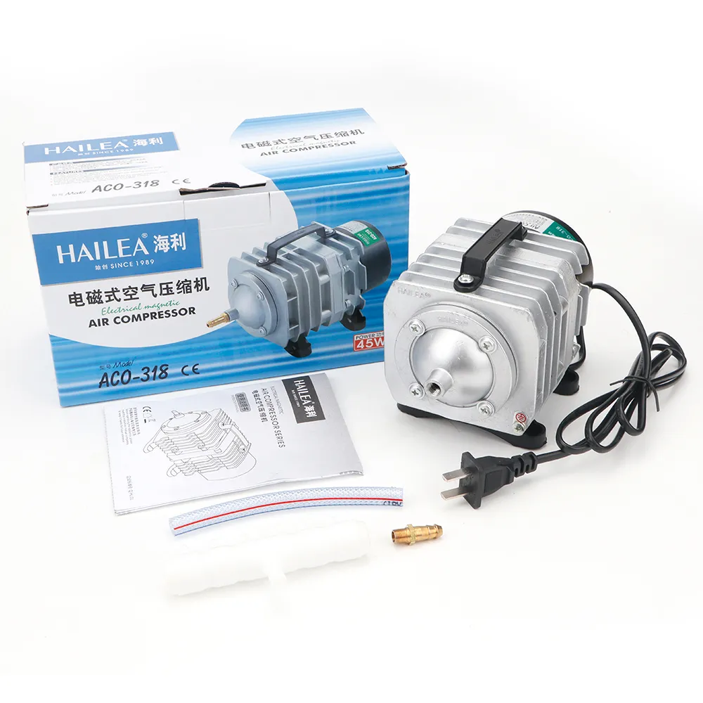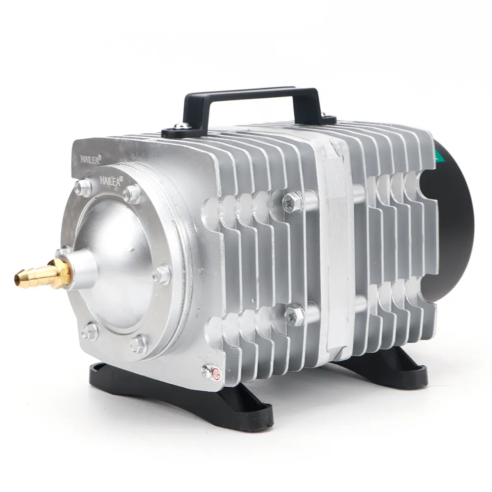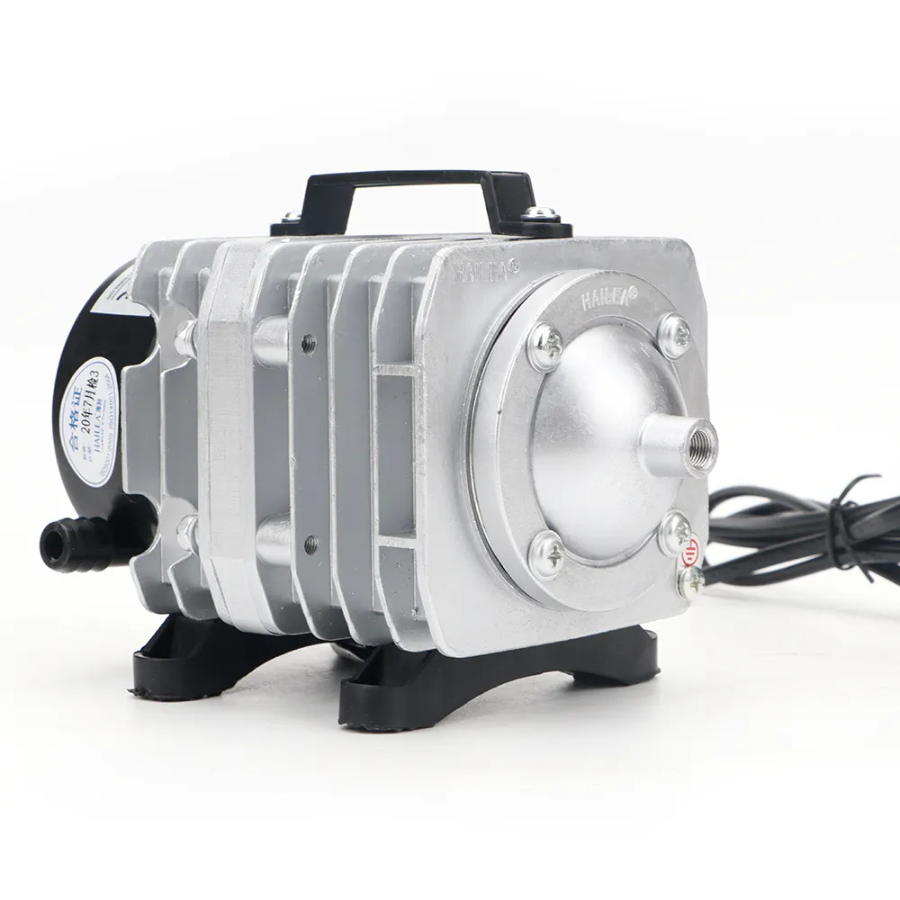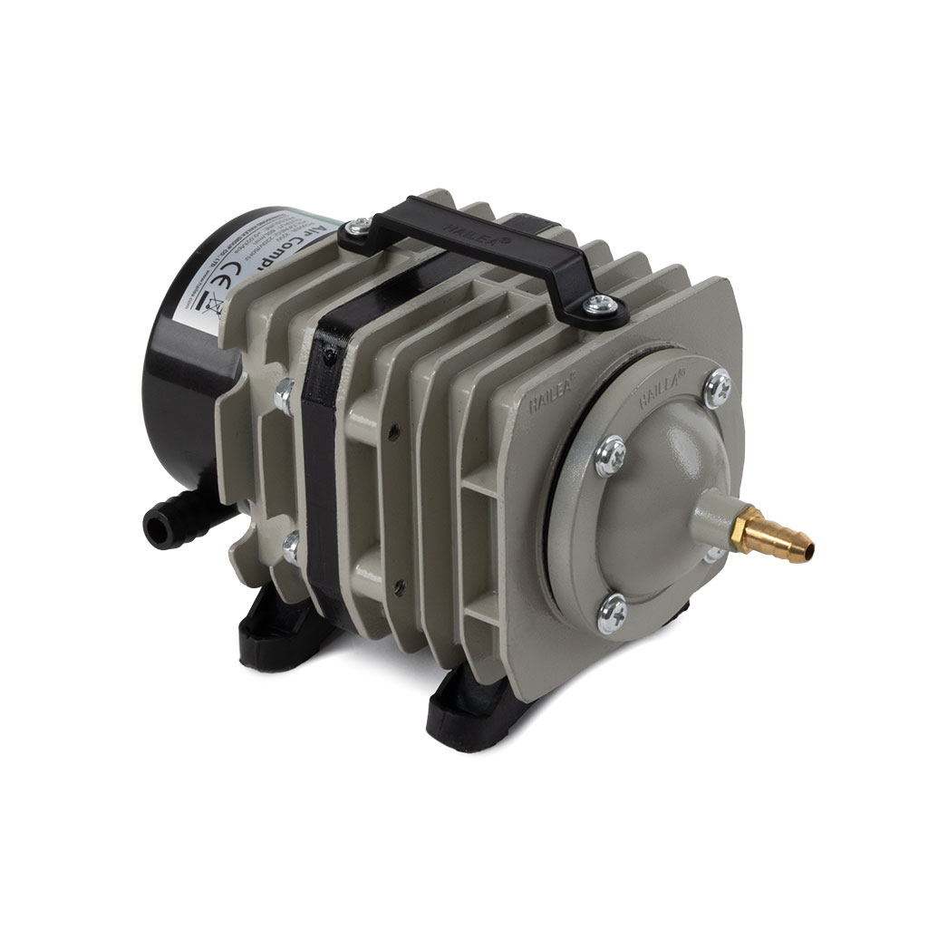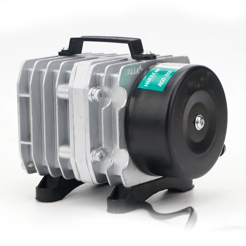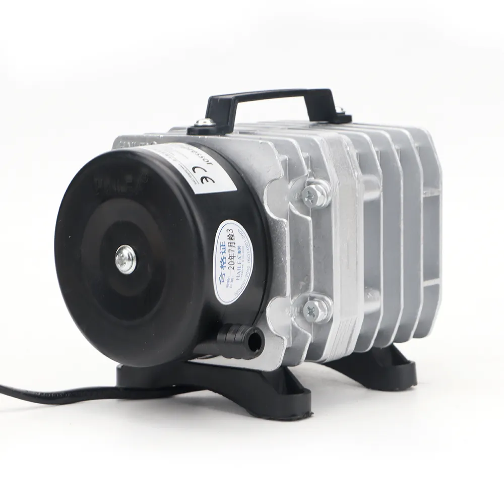 Charakteryzuje się wysoką wydajnością i dużą mocą sprężania, co umożliwia efektywną pracę nawet na dużych głębokościach. Żaden z elementów pompy nie jest oliwiony więc tłoczone powietrze jest czyste i bezpieczne dla organizmów wodnych. Korpus z radiatorem wykonany ze stopu aluminium ZL102, dzięki czemu urządzenie nie przegrzewa się i może pracować nieustannie bez wahań wydajności. Obudowa posiada uchwyt ułatwiający przenoszenie urządzenia. Przekładnia elektromagnetyczna zapewnia wstrzykiwanie powietrza przez bezpośredni ruch posuwisto-zwrotny i zwiększa racjonalność konstrukcji. Tłok i cylinder wykonane z termoplastycznego tworzywa zwiększającego żywotność pompy i obniżającego zużycie energii.