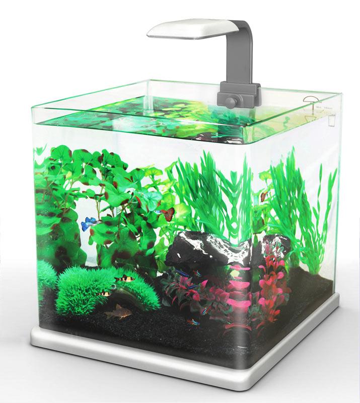 - akwarium o wymiarach 30 x 30 x 31 cm – proste i modne. Występujące w trzech kolorach – białym, czarnym i szarym, by pasowały do różnego stylu wnętrz