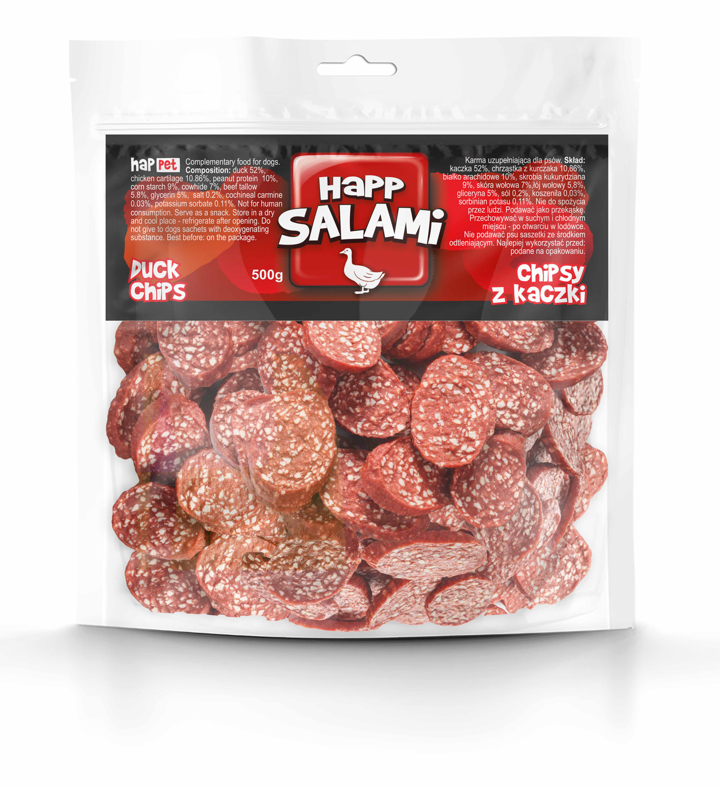 Chipsy z salami z kaczki – wyjątkowy przysmak dla psa (500 g)