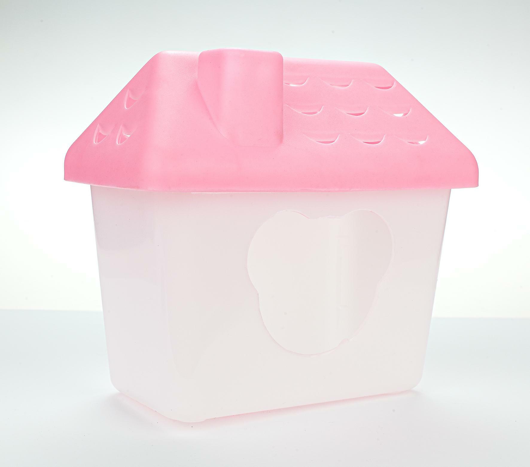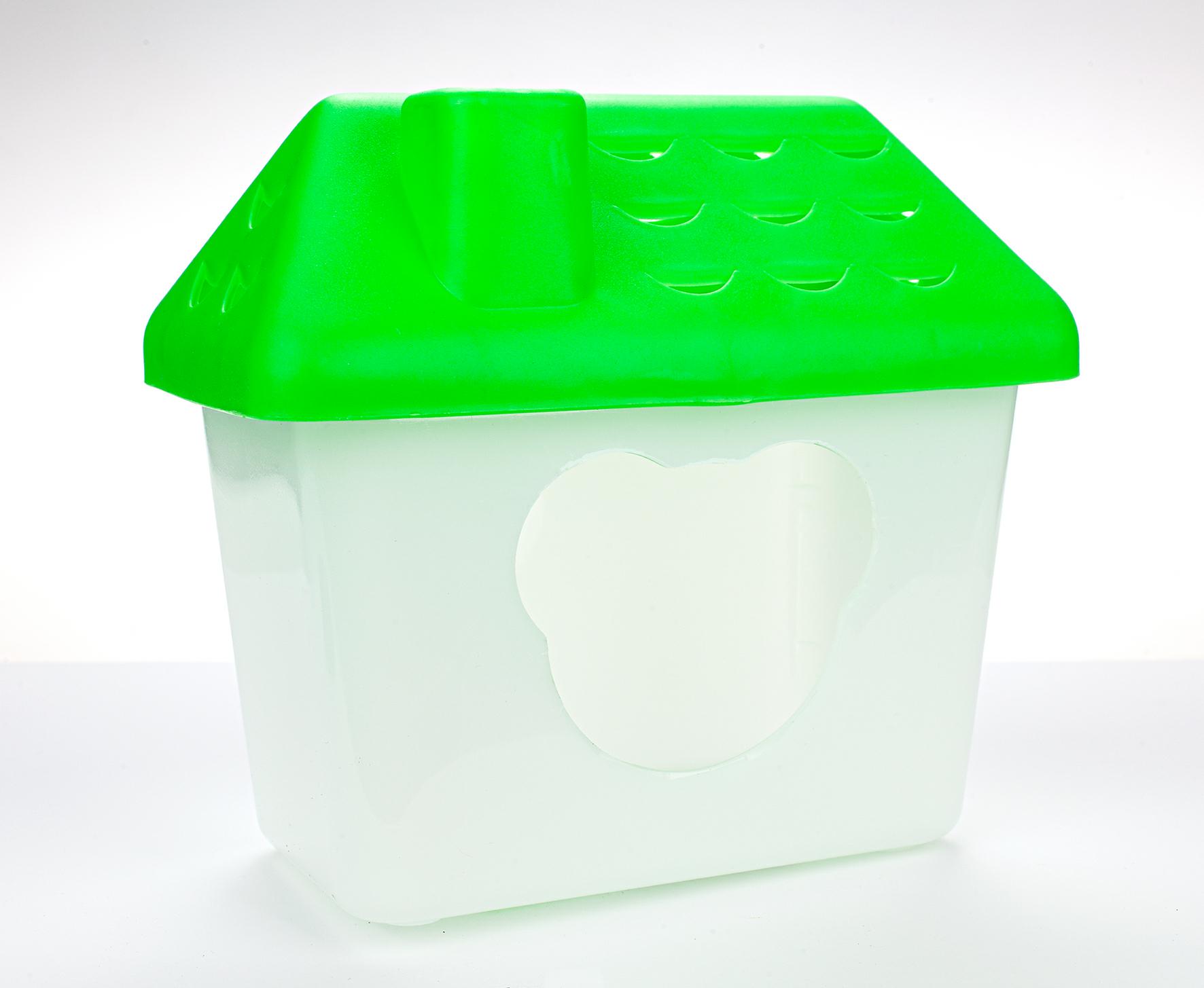 Dwukolorowy, plastikowy domek dla chomików i innych małych gryzoni.