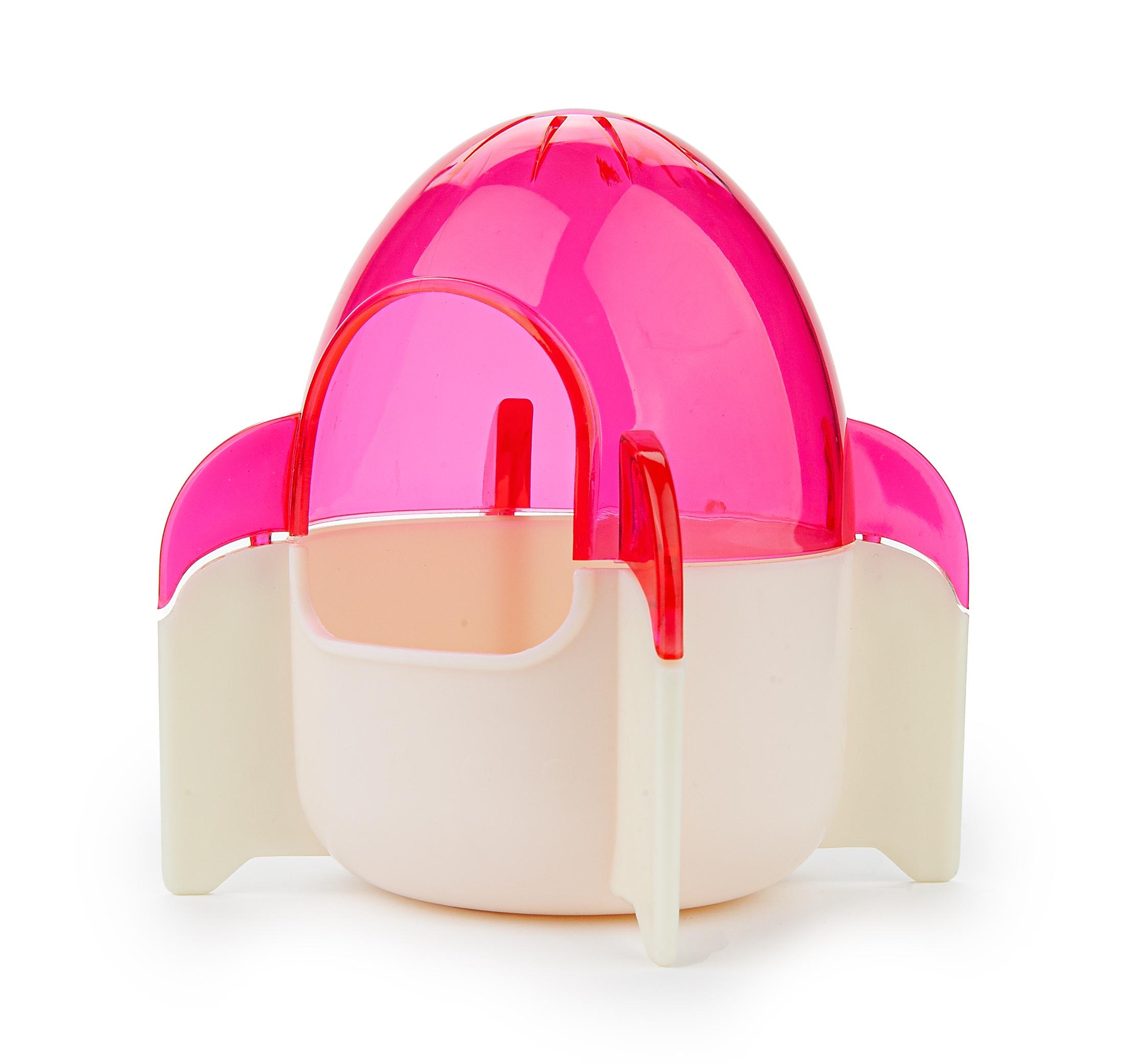 - bezpieczeństwo dla zwierzaka, możliwość obserwacji dla ciebie – półprzezroczysty różowy daszek da gryzoniowi poczucie schronienia, a tobie pozwoli na podglądanie jego zachowań