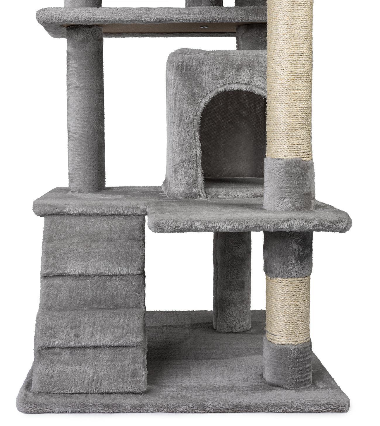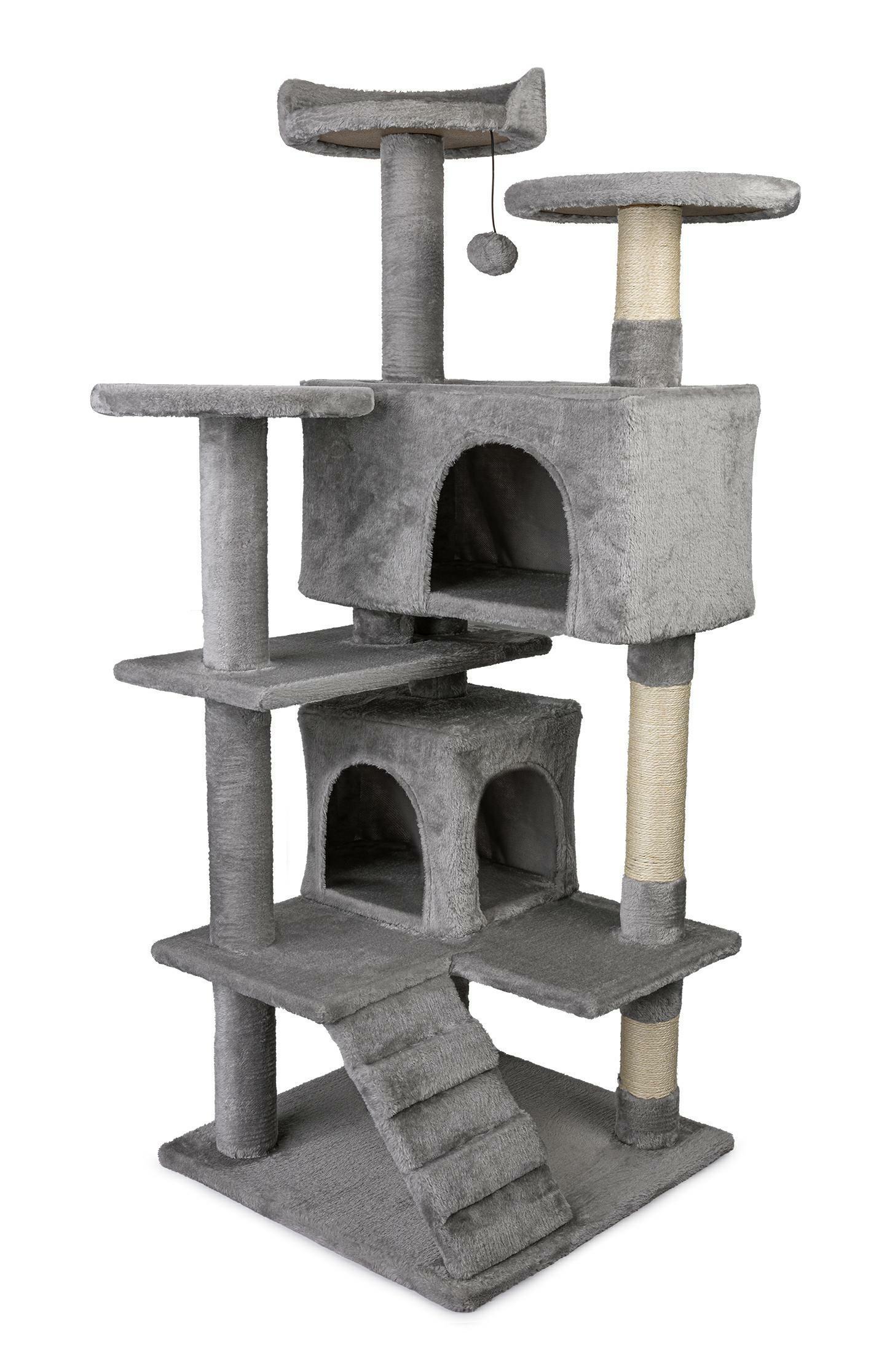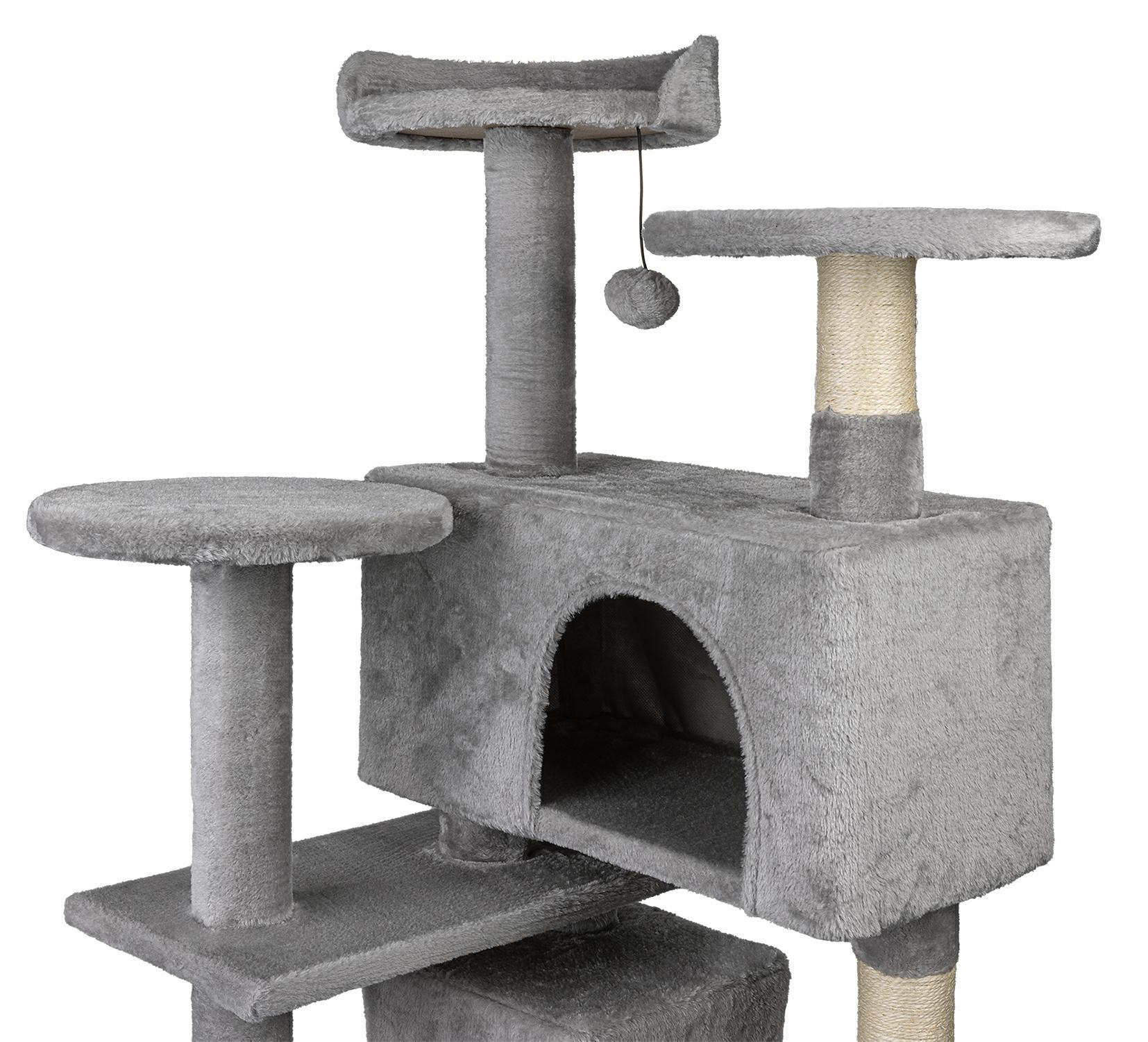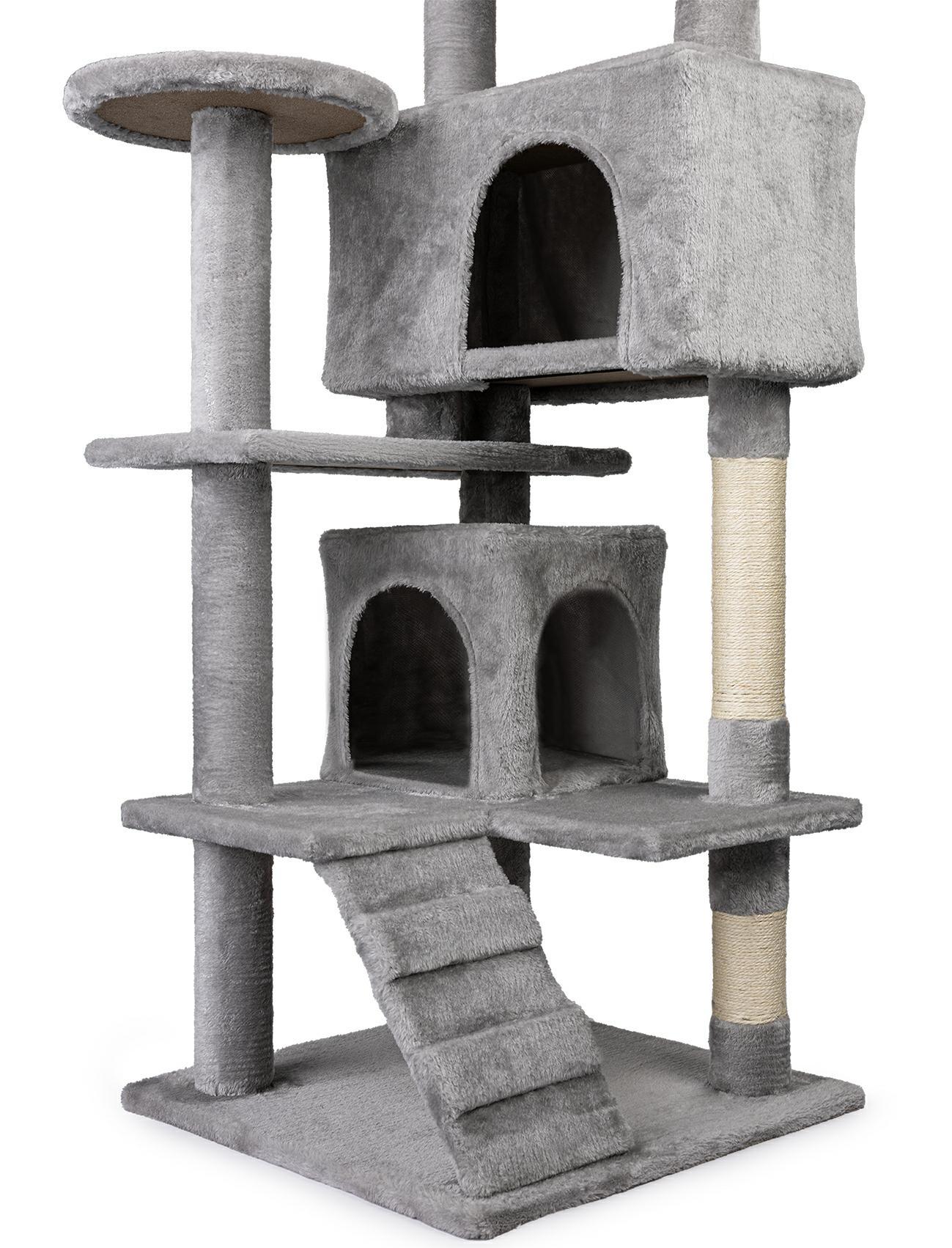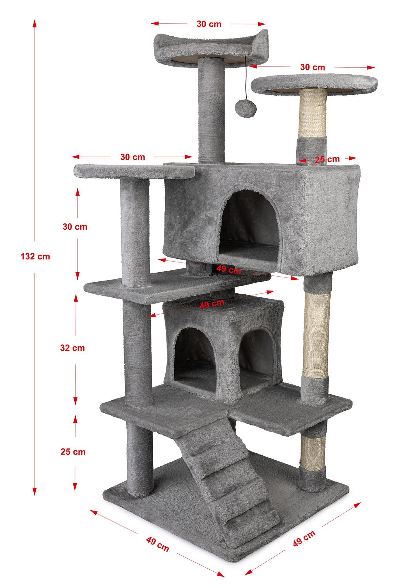 Prezentowany model drapaka dla kotów zapewnia zwierzętom zarówno przytulne miejsce do wypoczynku, jak i okazję do dobrej zabawy. Wolnostojąca konstrukcja składa się z ramy owiniętej pluszem oraz sizalową liną. Kilkupoziomowy drapak to również domki dla kota i miejsca, z których może wygodnie obserwować otoczenie.