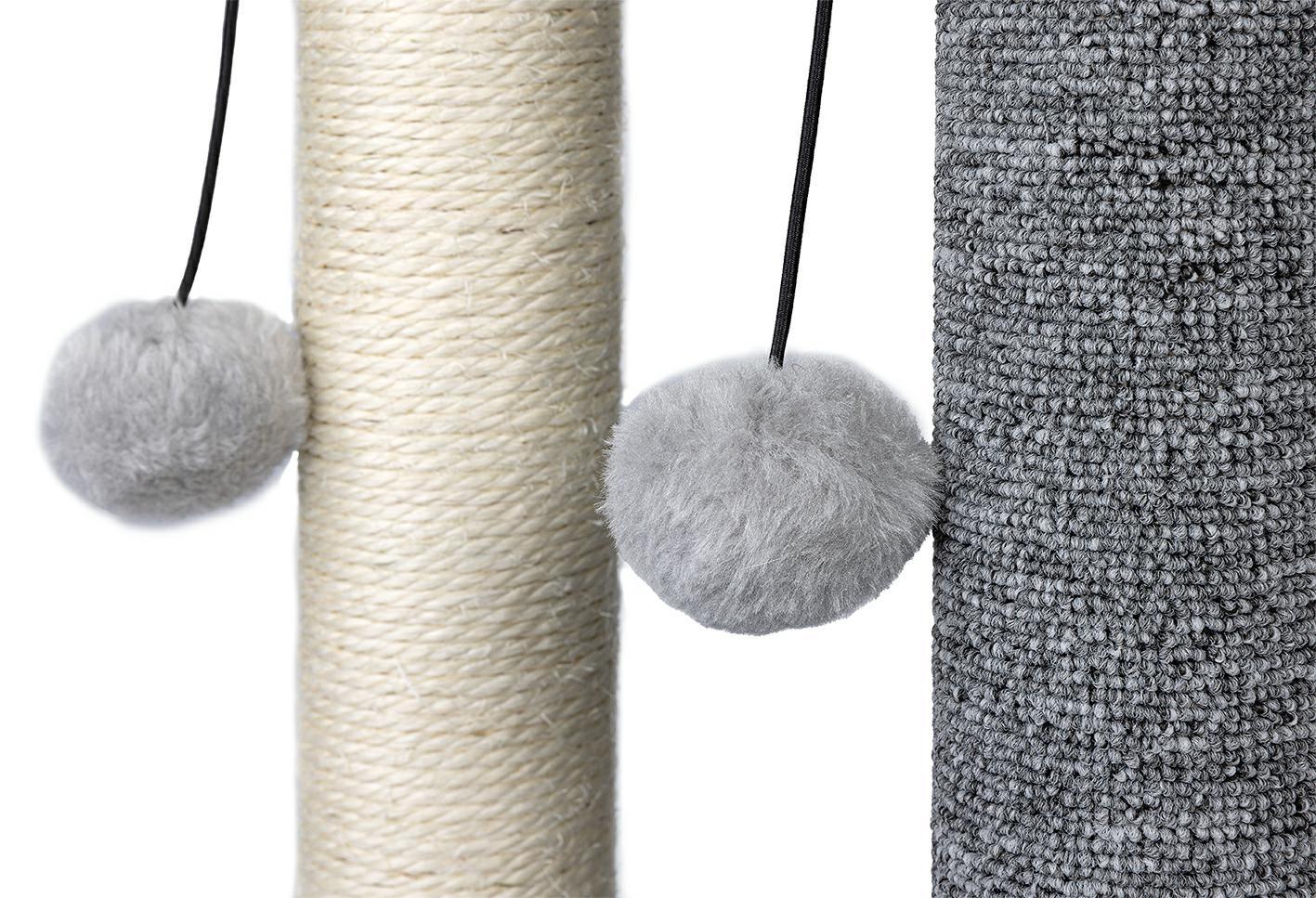 - Zabawki. Zamontowane piłeczki i piórka zachęcą kota do zabawy i aktywności fizycznej. Jest to zdrowe dla kota i ważne z perspektywy jego potrzeb behawioralnych.