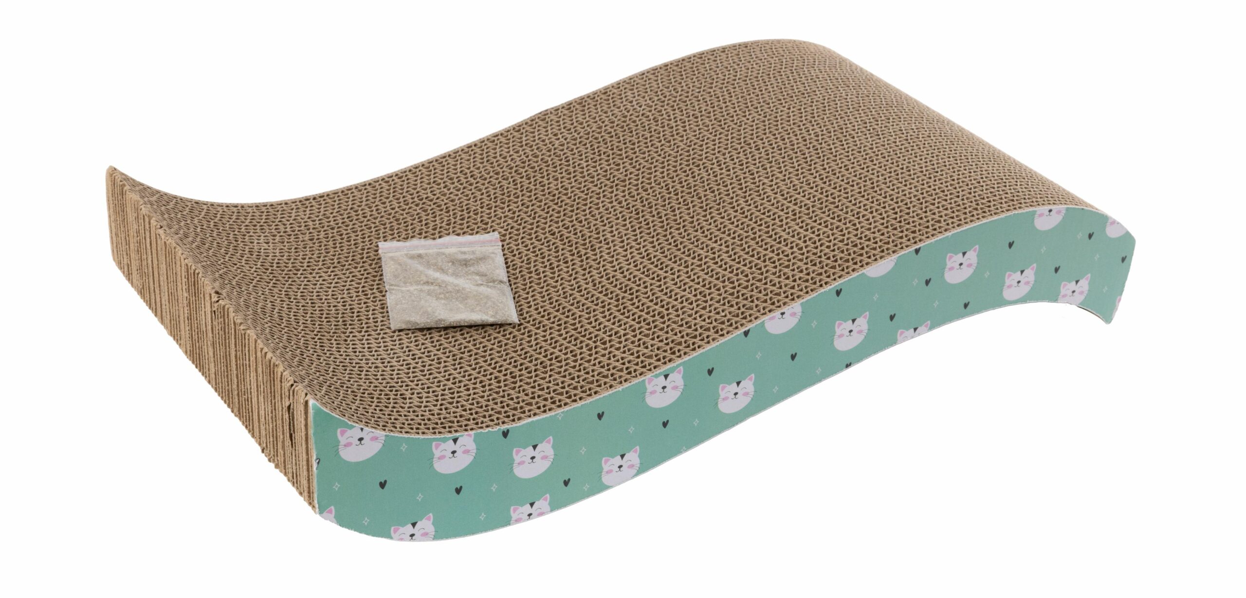 Drapak został wyprodukowany z troską o środowisko z solidnej tektury falistej, która dzięki połączeniu w spójny blok staje się niezwykle wytrzymała. Wyprofilowany drapak spełnia wiele funkcji– jest odpowiednim miejscem do wygodnego leżenia, ostrzenia pazurów oraz zabawy, a jego struktura jest niezwykle atrakcyjna dla kotów w każdym wieku. W komplecie znajduje się saszetka z suszoną kocimiętką, która wprawi kota w dobry nastrój i zachęci do zabawy.