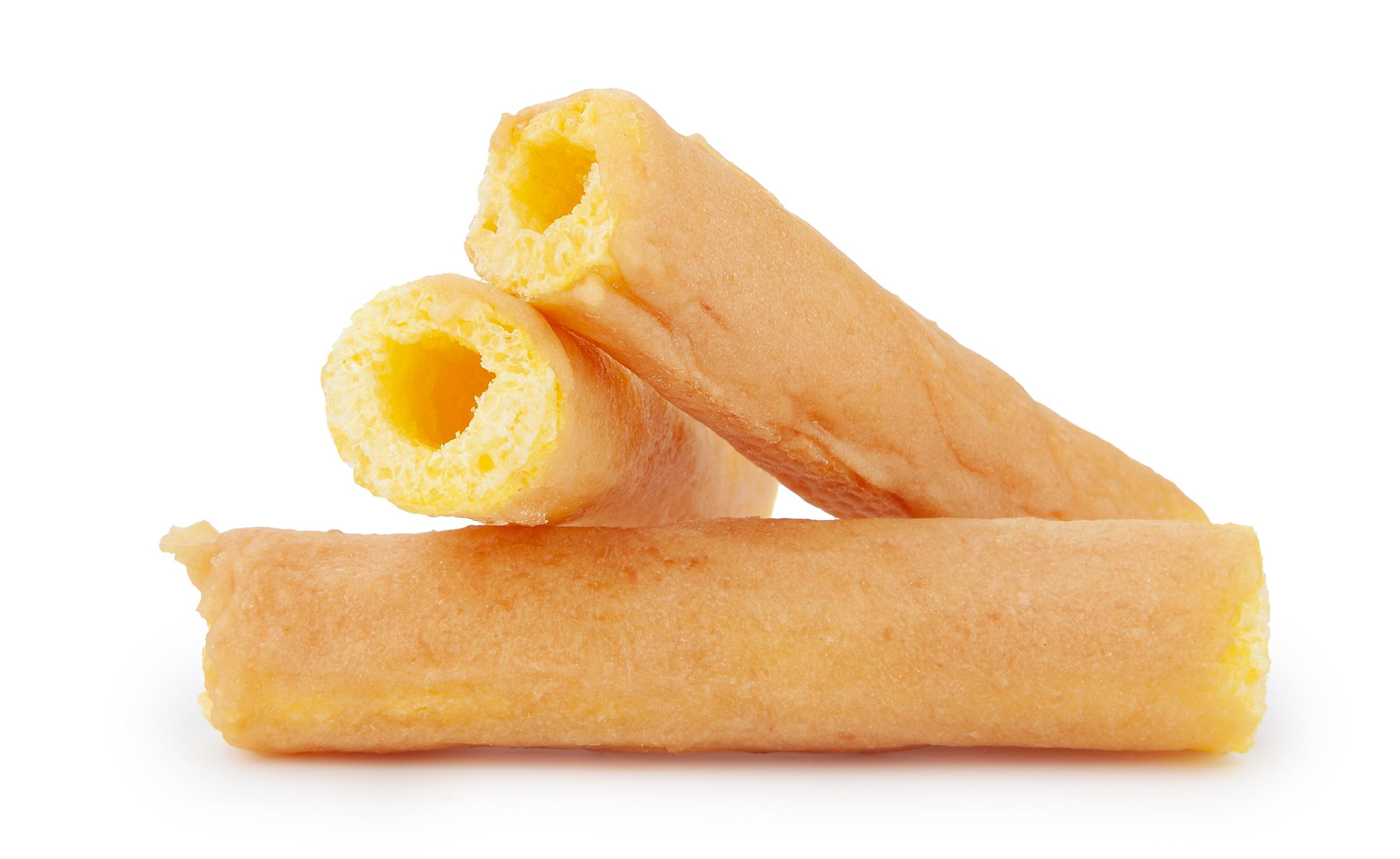Rurki kukurydziane z kurczakiem – smakowita i zdrowa przekąska dla psów, stanowi idealne uzupełnienie diety. Dostarcza psu dużej ilości białka, które jest niezbędne dla prawidłowego funkcjonowania jego organizmu. Wyjątkowe rurki kukurydziane z mięsem kurczaka to pyszny smakołyk dla Twojego pupila. Sprawdza się jako naturalny gryzak, który z powodzeniem zajmie czas czworonogowi oraz pomoże w utrzymaniu prawidłowej higieny jamy ustnej. Dodatkowo aromatyczny gryzak to idealna forma nagrody. Świetnie sprawdza się na treningach i podczas zabaw, mają też wspaniały, mięsny aromat, dlatego stanowią prawdziwą gratkę dla psiego podniebienia. Produkt nie zawiera żadnych, sztucznych barwników, ani substancji konserwujących. Dzięki poddaniu procesowi suszenia produkt przez długi czas zachowuje świeżość i elastyczność.