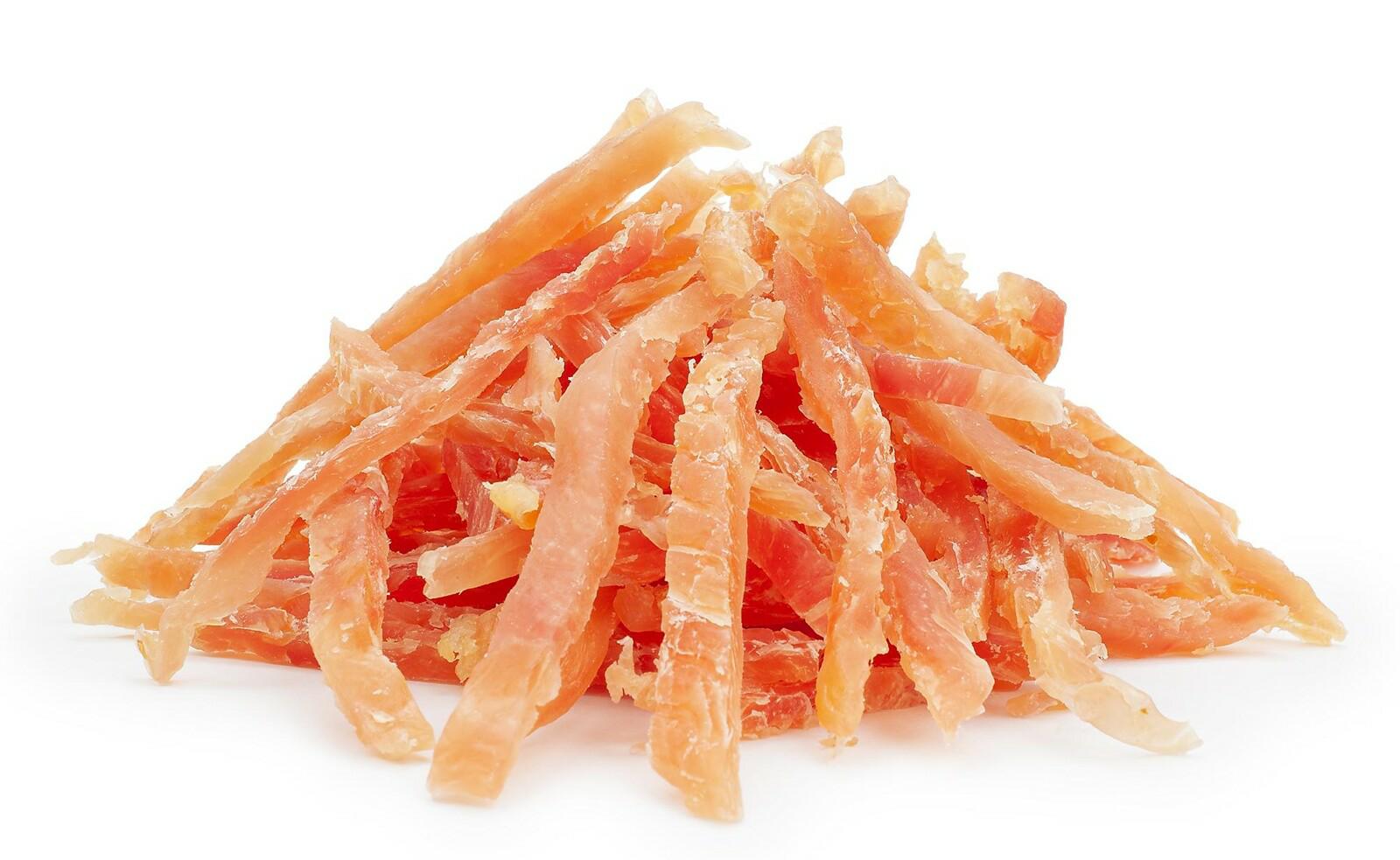 Paski z kurczaka miękkie – prawdziwa gratka dla każdego czworonogiego smakosza. Soczysta i aromatyczna pierś z kurczaka pocięta na niewielkie kawałki nadaje się w szczególności dla psów małych i średnich ras. Kurczak jest jednym z ulubionych snacków psich pupili, dostarcza niezbędnego dla prawidłowego rozwoju białka. Przysmak jest lekkostrawny i łatwo przyswajalny. Wyprodukowany został w 100% z prawdziwego mięsa drobiowego wysokiej jakości. Dzięki poddaniu procesowi suszenia produkt nie psuje się oraz staje się twardy i idealny do żucia.