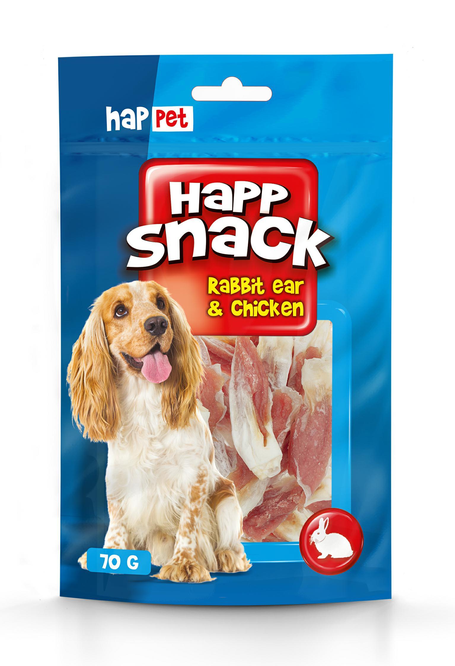 Przysmak naturalny w postaci uszu króliczych z mięsem z kurczaka – można podawać jako nagrodę podczas tresury, przysmak, albo przekąskę. Smakołyk jest w 100% przyswajalny, miękki i elastyczny. Pomaga zaspokoić naturalną, psią potrzebę żucia i gryzienia. Żując królicze uszy pies czyści swoje zęby z kamienia i nalotu bakteryjnego oraz wzmacnia dziąsła. Przysmak stanowi dodatkowe uzupełnienie codziennej diety, nie należy jednak podawać go jako podstawowego pokarmu.