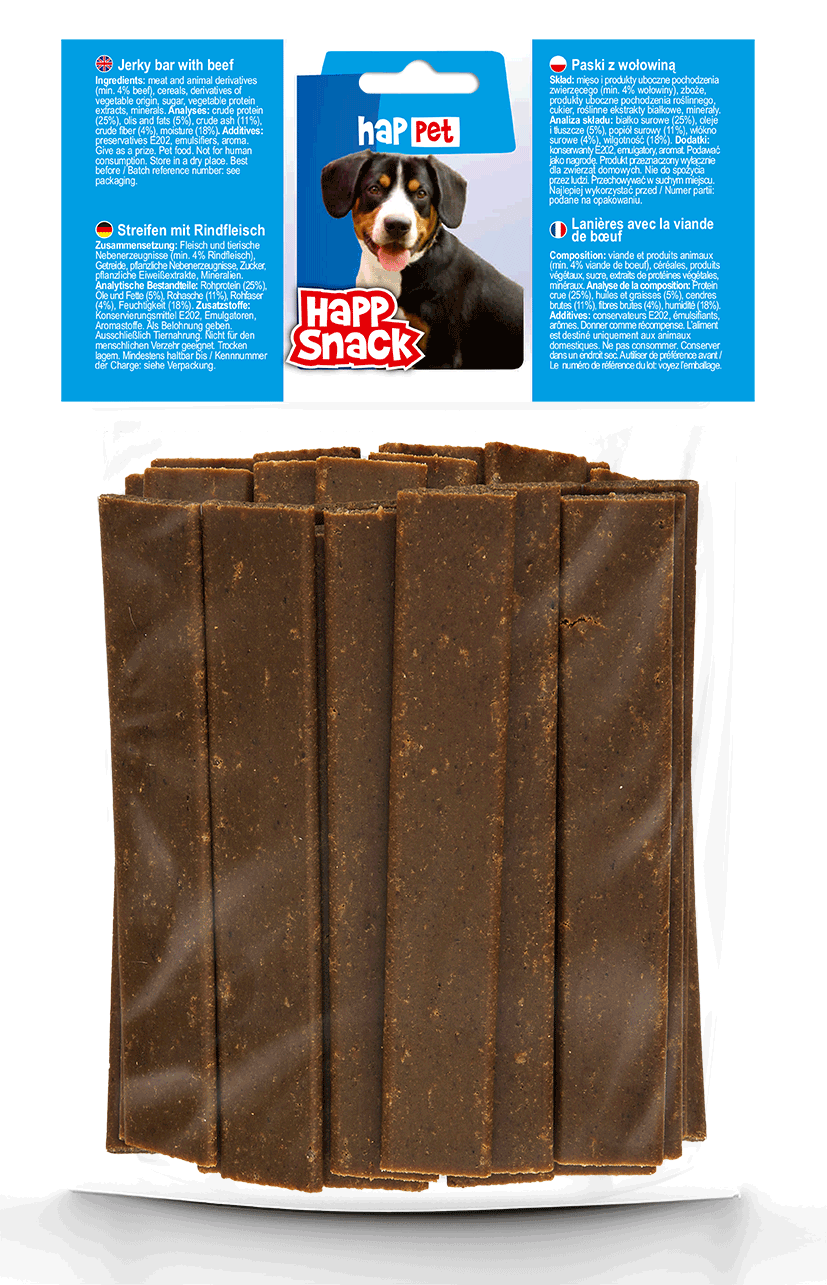 Szukasz aromatycznego przysmaku dla psa, któremu znudziły się już zwykłe psie ciastka? Wypróbuj miękkie paski z kurczakiem z serii Happ Snack, które zadowolą nawet najbardziej wybrednego pupila