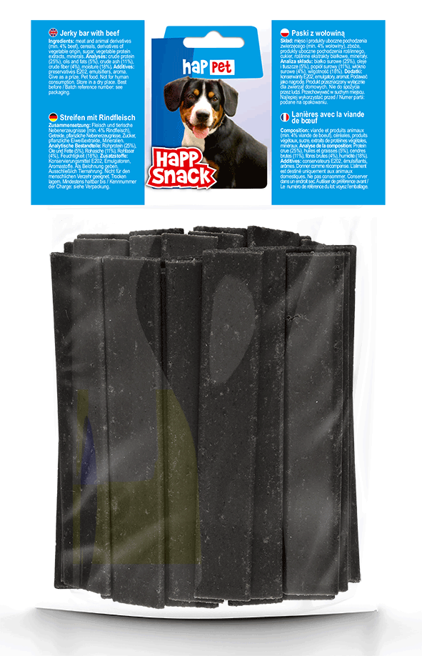 Szukasz aromatycznego przysmaku dla psa, któremu znudziły się już zwykłe psie ciastka? Wypróbuj miękkie paski z wołowiną z serii Happ Snack, które zadowolą nawet najbardziej wybrednego pupila.