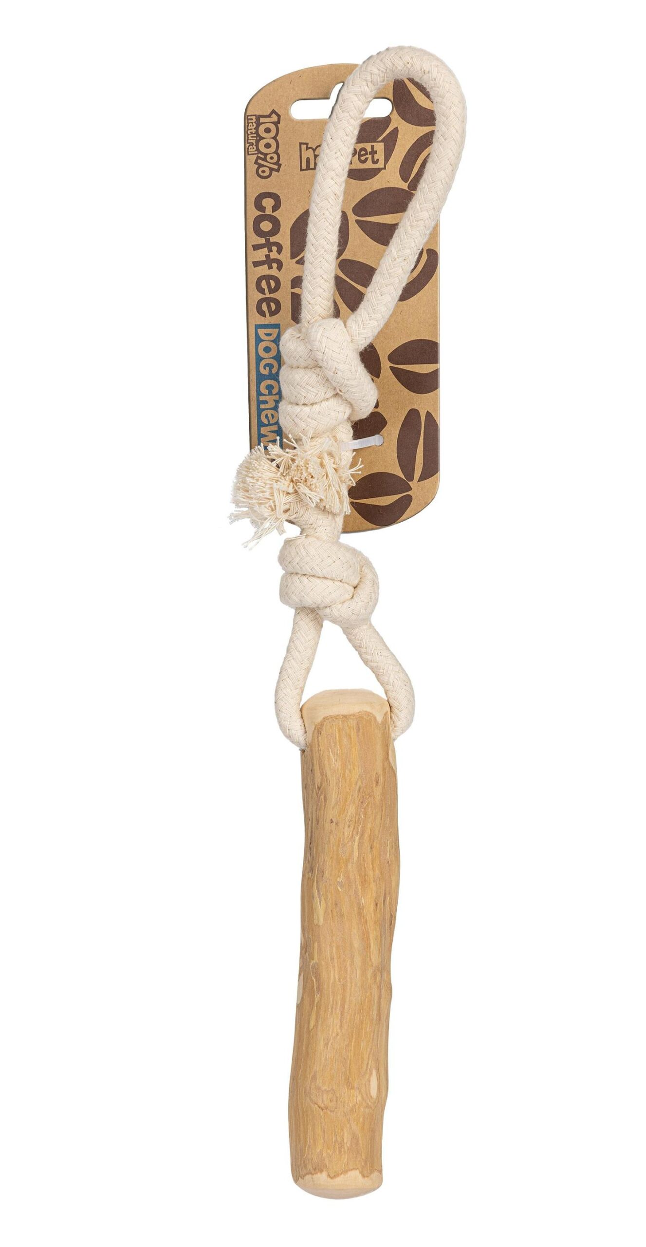 Szarpak z drzewa kawowego ze sznurkiem bawełnianym to w 100% naturalny produkt! Taka zabawka jest przyjazna dla środowiska, bezpieczna dla psa i po porstu trwała. Zapewnia zatem długie godziny wyśmienitej zabawy i okazji do realizowania naturalnych psich potrzeb! Szarpak wykonany z naturalnych materiałów łączy w sobie drewno kawowe z bawełnianym sznurkiem. Zabawka nie zawiera żadnych sztucznych składników. Mimo że powstała z drzewa kawowego, nie zawiera także kofeiny.