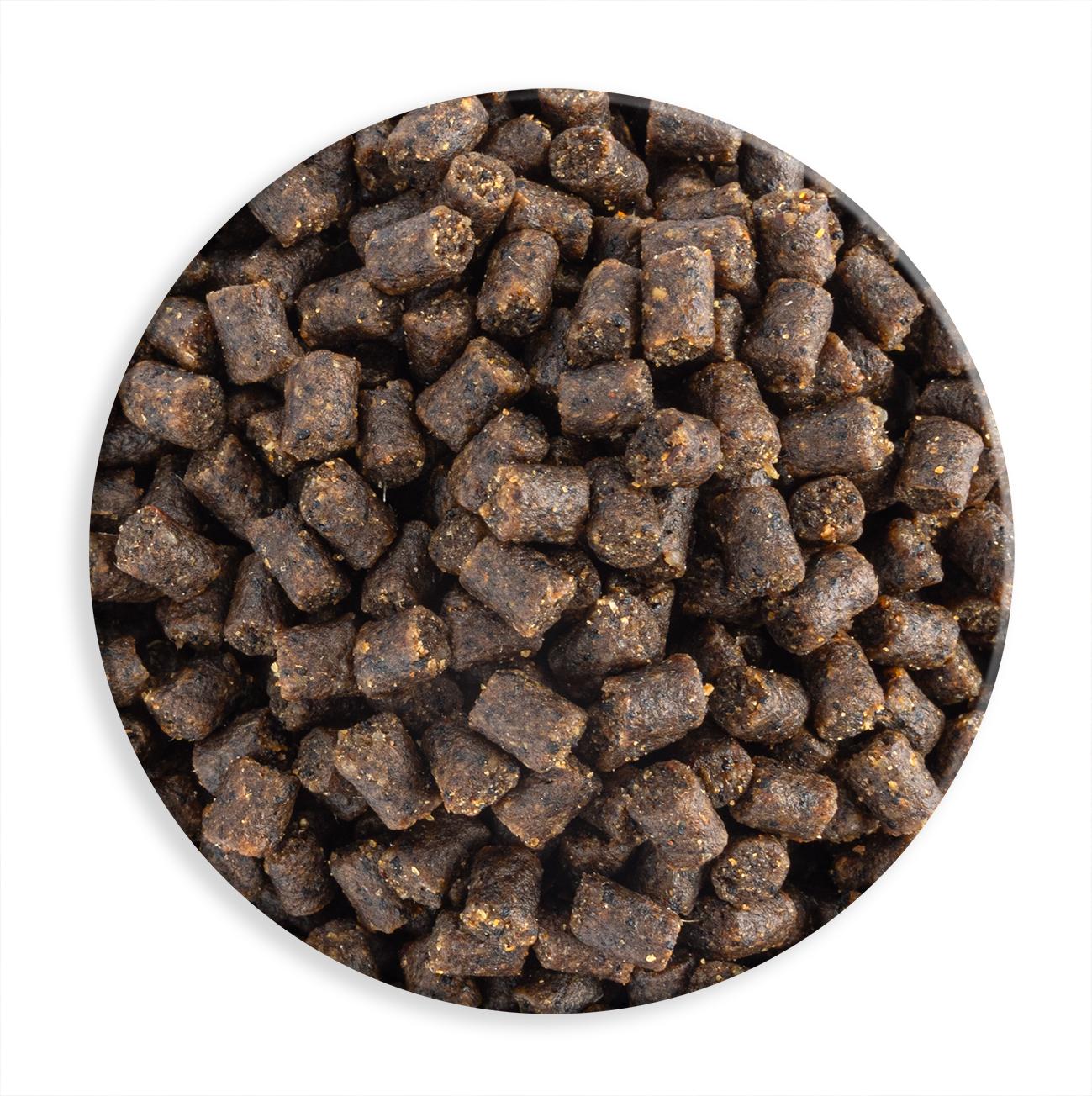 Analiza: proteiny 37%, tłuszcze 12%, błonnik 1,5%, popiół 10%