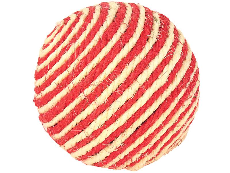 Piłkę pokrywa mocny sznurek, który z pewnością przetrwa zabawę z użyciem ostrych, kocich pazurków. Zabawka jest wielokolorowa, przyciąga uwagę i zachęca do zabawy na wiele różnych sposobów. Kot może ją turlać, podrzucać, gonić i wbijać pazurki. Warto pamiętać o regularnym kontrolowaniu stanu zabawek. Jeśli stwierdzimy, że przedmiot jest uszkodzony, zaleca się jego wymianę.