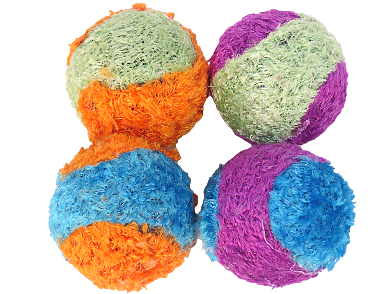 Zestaw czterech wielokolorowych piłeczek wykonanych z miękkiego pluszowego materiału zapewnia kociemu pupilowi wielogodzinną stymulację do aktywności i wspaniałą zabawę.