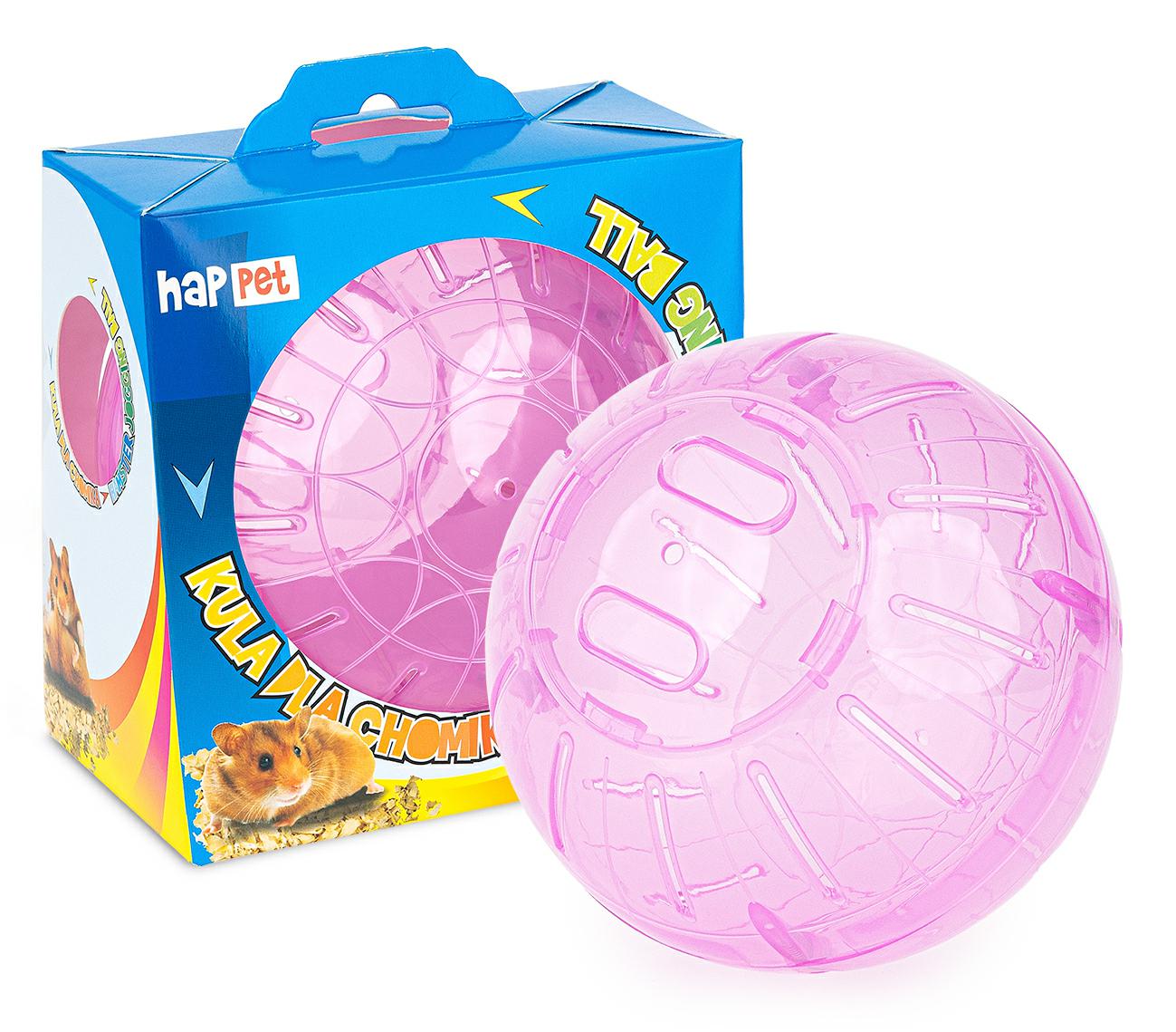 Plastikowa, transparentna kula z otworami wentylacyjnymi dla chomików i innych małych gryzoni.