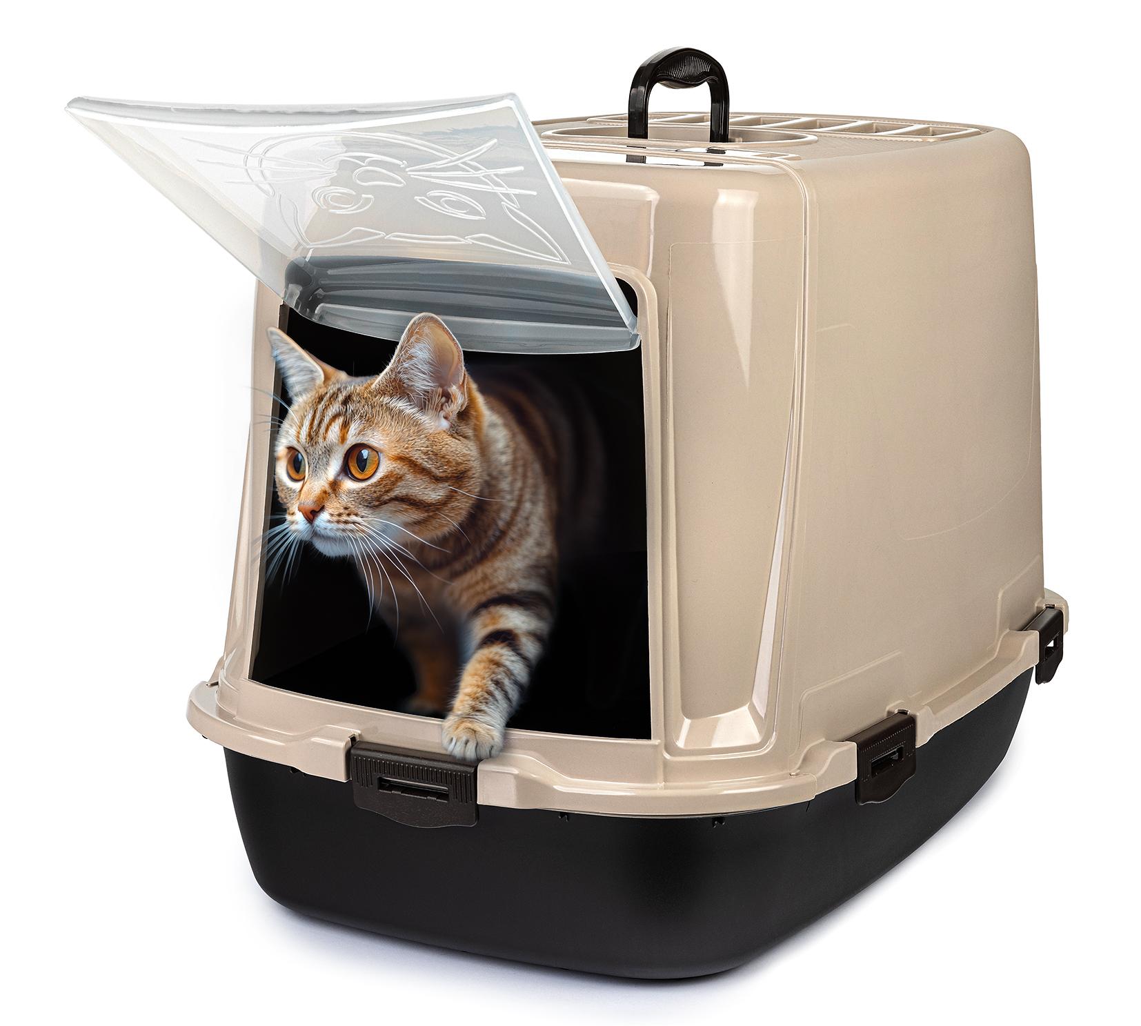 Prezentujemy zabudowaną kuwetę, która łączy w sobie wiele praktycznych rozwiązań. Przede wszystkim zapobiega roznoszeniu się żwirku, nawet jeśli kot lubi bardzo intensywnie kopać w kuwecie. Dodatkowo zapewnia mruczkowi sporo prywatności, co w zależności od charakteru zwierzęcia może być kluczowe dla bezstresowego korzystania z toalety. Kuweta posiada drzwiczki na zawiasach oraz wygodną rączkę do transportu. Cała górna część kuwety jest zdejmowana, zamontowana na prostych w użyciu klipsach, co ułatwia jej czyszczenie.