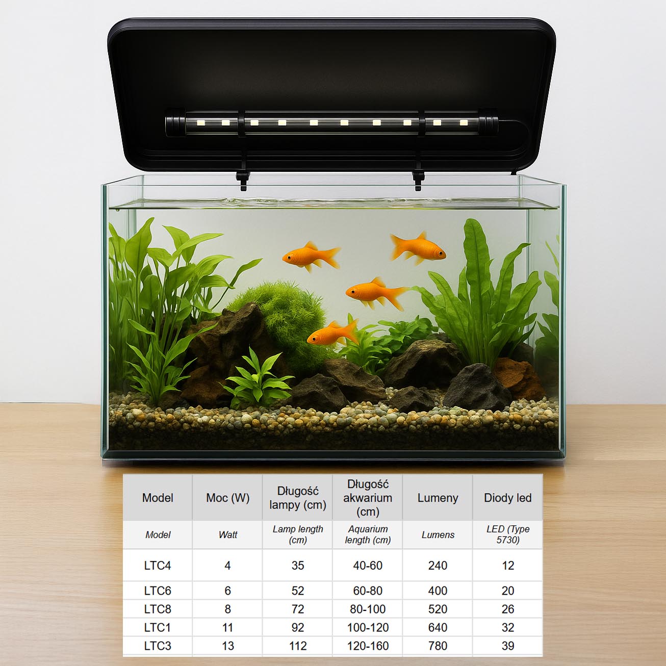 Profesjonalne oświetlenie dla akwariów o długości 80-90 cm. Szeroki zakres widma i barwy emitowanego światła pozwala zaspokoić potrzeby większości popularnych roślin akwariowych o umiarkowanych wymaganiach świetlnych (jak. rzęsa drobna, wgłębka, moczarka argentyńska, wywłócznik, lotos tygrysi, kryptokoryna). Dzięki hermetycznej obudowie, AquaLED Tube Color znosi wysoką wilgotność powietrza, ochlapanie, a nawet zanurzenie pod wodą. Do atutów urządzenia należy niewielkie zużycie prądu, rozsądny stosunek ceny do jakości oraz poręczne uchwyty, umożliwiające montaż na dowolnej pokrywie, nawet samoróbce. Świetlówka sprawdzi się nie tylko w konwencjonalnych akwariach, lecz również paludariach i akwaterrariach zamieszkiwanych przez skorupiaki (np. kraby z rodzaju Geosesarma) i drobne płazy (jak kumaki dalekowschodnie czy traszki chińskie). Znajdzie również zastosowanie w terrariach przeznaczonych do uprawy światłolubnych roślin owadożernych (rosiczka, muchołówka, kapturnica), często marniejących w warunkach parapetowych.