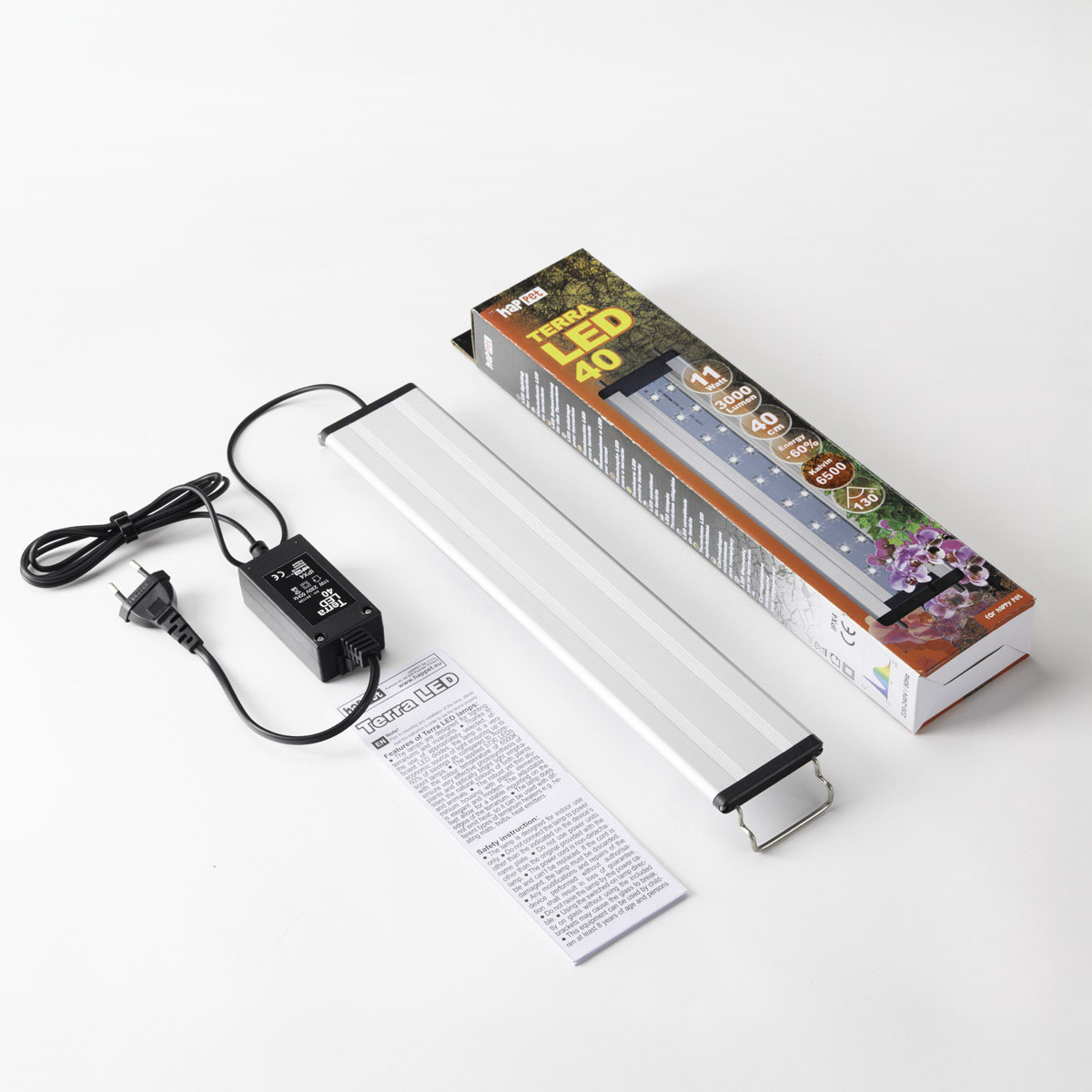 - Solidna, a jednocześnie cienka aluminiowa obudowa z plastikowymi elementami jest elegancka i nowoczesna. Regulowane nóżki umożliwiają stabilne zamocowanie na krawędziach terrarium.