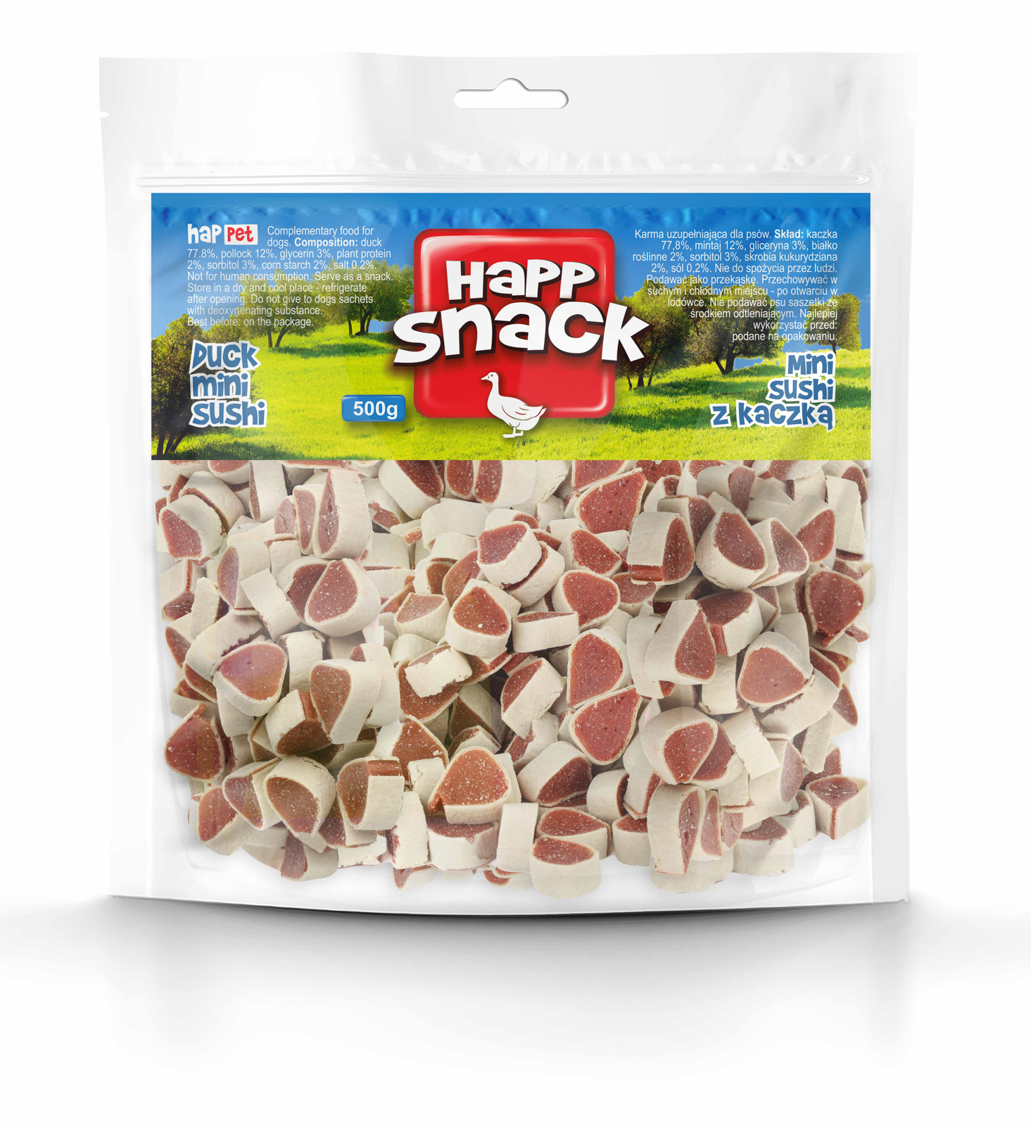 Miękka i elastyczna struktura sprawia, że przysmak jest łatwy do gryzienia – świetnie sprawdzi się zarówno dla szczeniąt, dorosłych psów, jak i seniorów. Sorbitol i gliceryna utrzymują odpowiedni poziom wilgotności, a skrobia kukurydziana i białko roślinne wspierają trawienie.