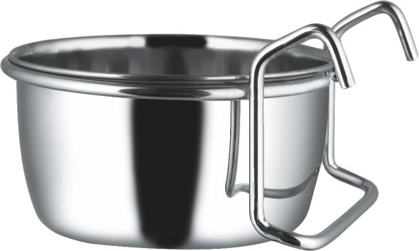Praktyczny uchwyt umożliwia zamontowanie miski do szczebli klatki, woliery lub kojca powodując jej stabilność.