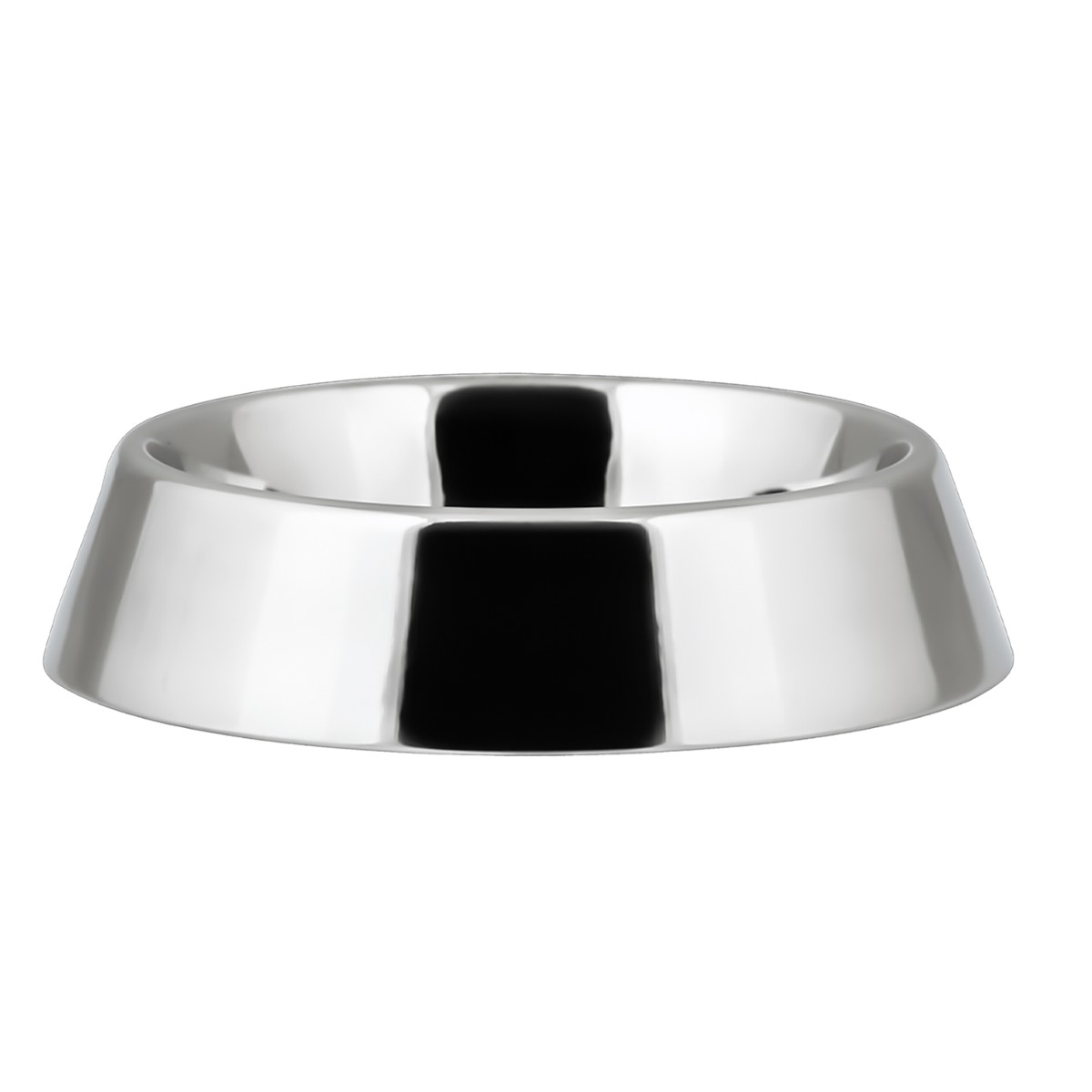 Metalowa miska w kolorze srebrnym, z błyszczącym wykończeniem, wykonana ze stali nierdzewnej.