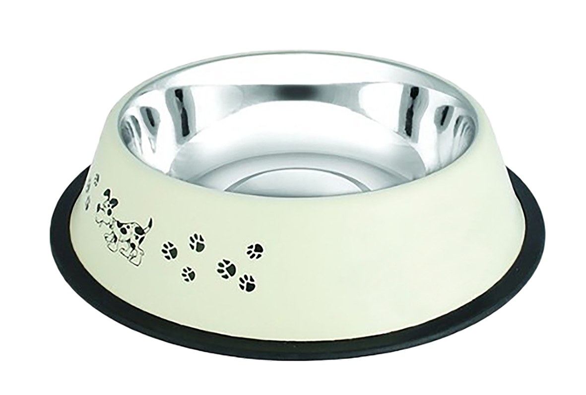 Zamieszczona jest na antypoślizgowej, gumowej obręczy, która zapobiega przesuwaniu, a kształt miski utrudnia jej przewrócenie.