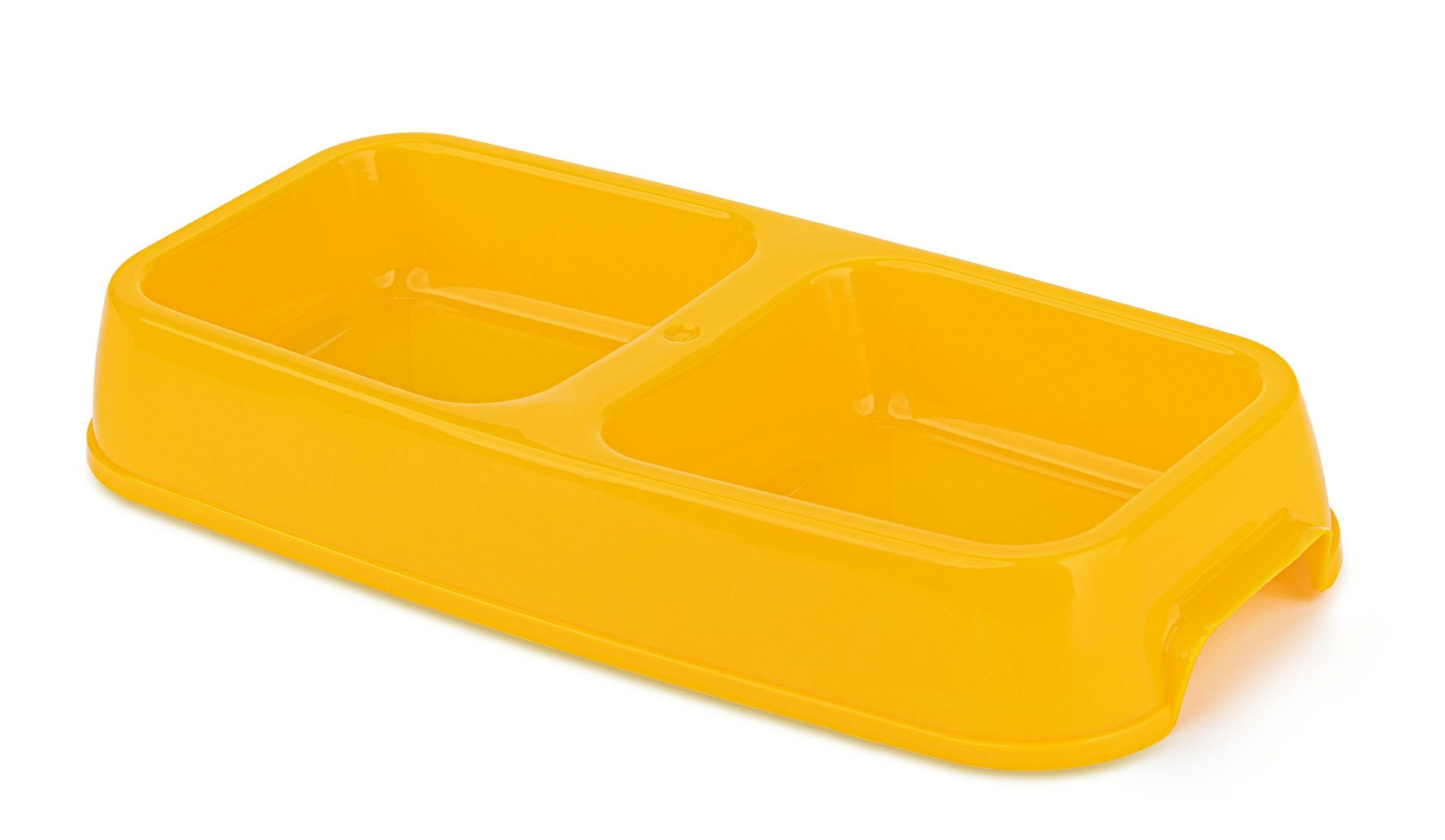 Plastikowa podwójna miska – odpowiednia dla kotów i psów. Jest łatwa w utrzymaniu w czystości, oraz posiada praktyczny uchwyt ułatwiający przenoszenie.