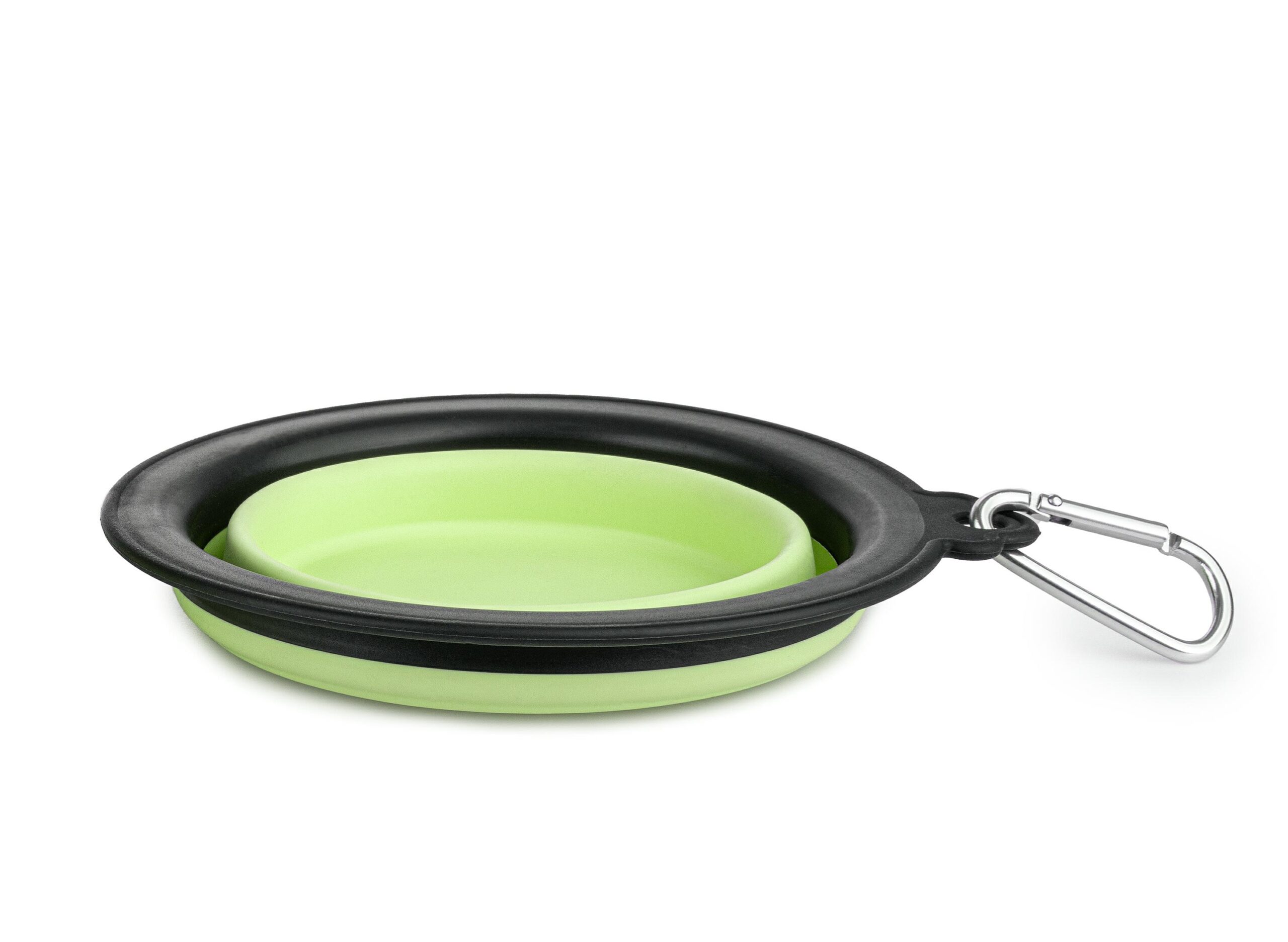 Praktyczna podróżna miska składana wykonana jest trwałego, miękkiego silikonu. Odpowiednia do podawania wody lub jedzenia. W komplecie znajduje się metalowy karabińczyk, za pomocą którego można przymocować miskę np. do plecaka.