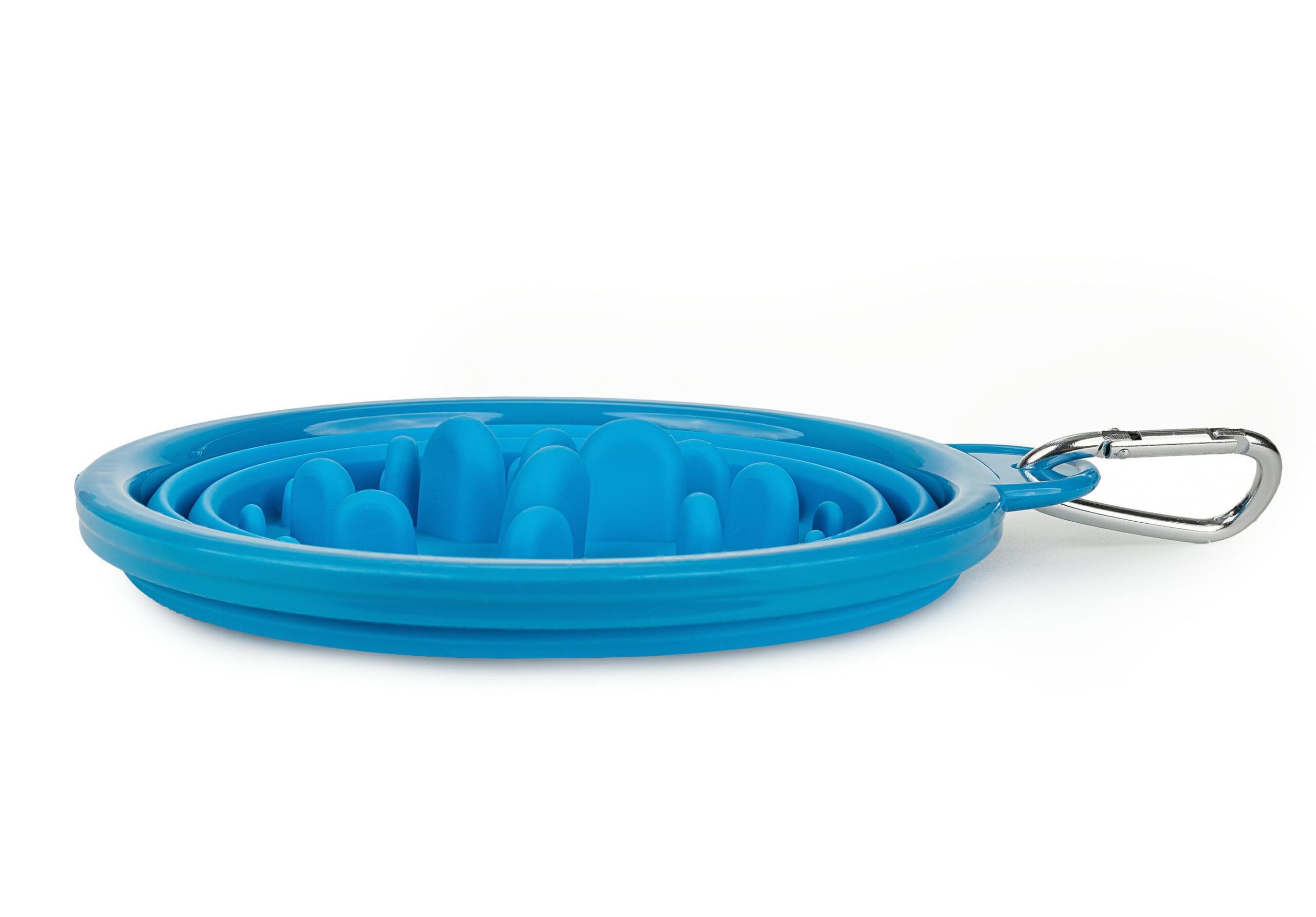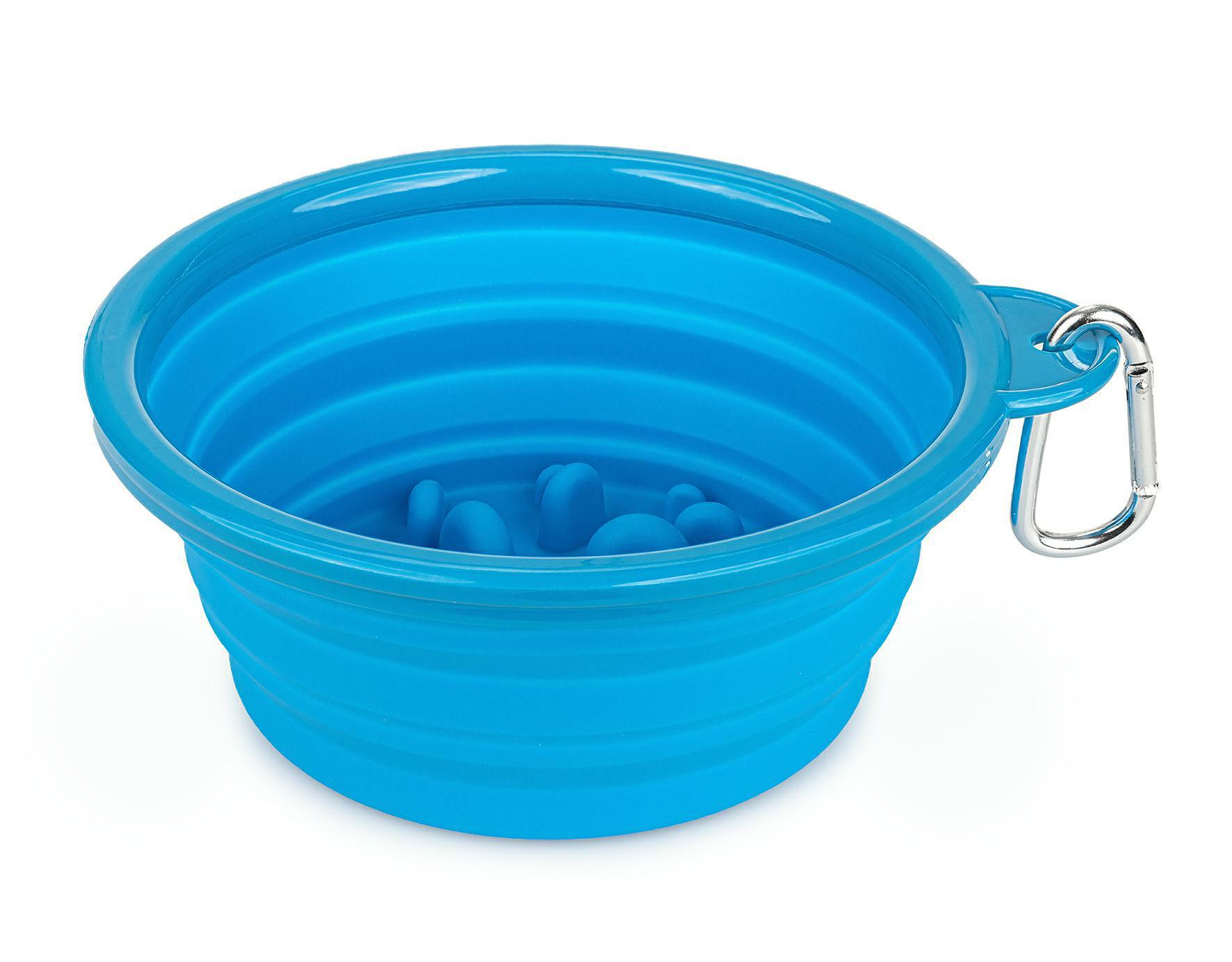 Twój pies to łakomczuch, który szybko je? Nie ma problemu! Wybierz składaną miskę spowalniającą jedzenie (dostępną w kolorze niebieskim). Stosowanie takiego rozwiązania zmniejsza ryzyko zadławienia i wymiotów (podczas i zaraz po jedzeniu). Miski spowalniające jedzenie mogą być przydatne dla psów z nadwagą i otyłych oraz mających zaburzenia trawienia.