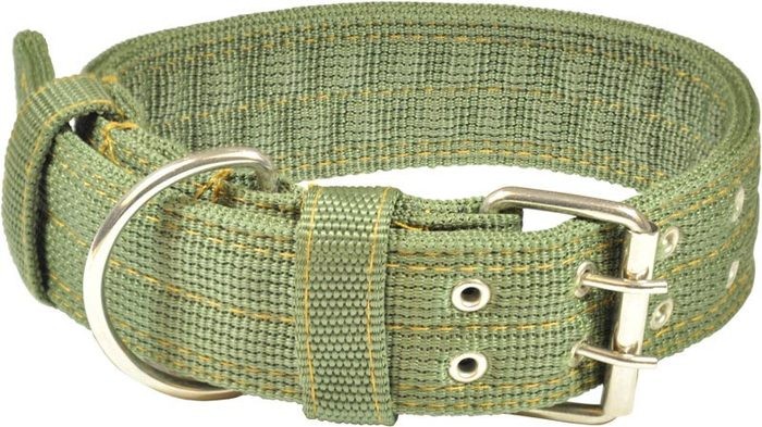 Obroża wykonana jest z podwójnej szerokiej, mocnej taśmy nylonowej.