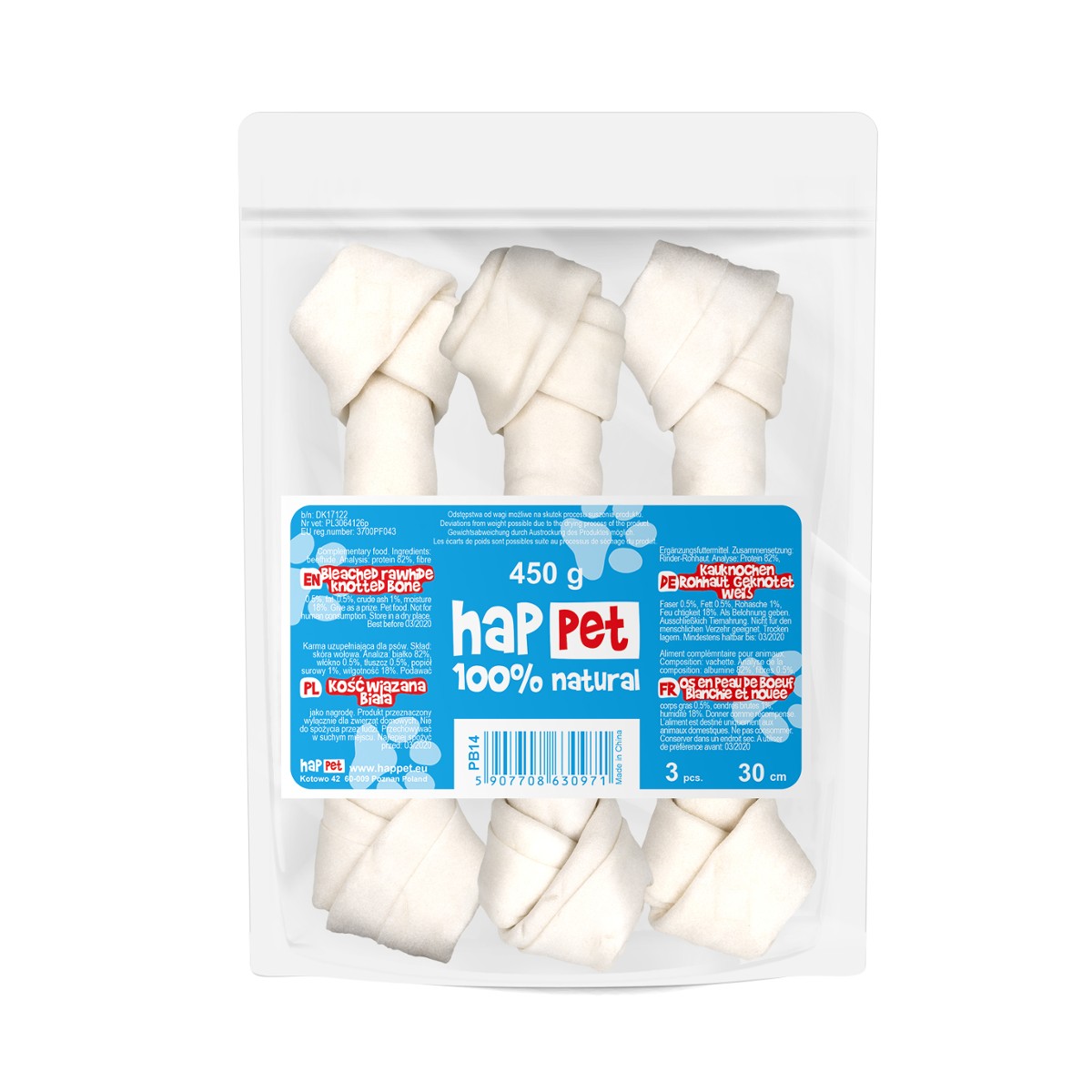Kości firmy Happet produkowane są ze specjalnej masy przygotowywanej z rozgotowanej skóry wołowej, która następnie zostaje wysuszona i sprasowana na kształt prawdziwej kości.