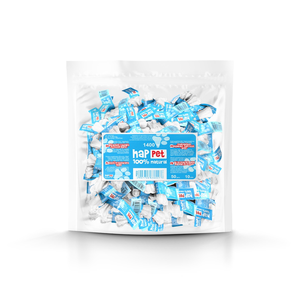 Kości firmy Happet produkowane są ze specjalnej masy przygotowywanej z rozgotowanej skóry wołowej, która następnie zostaje wysuszona i sprasowana na kształt prawdziwej kostki.
