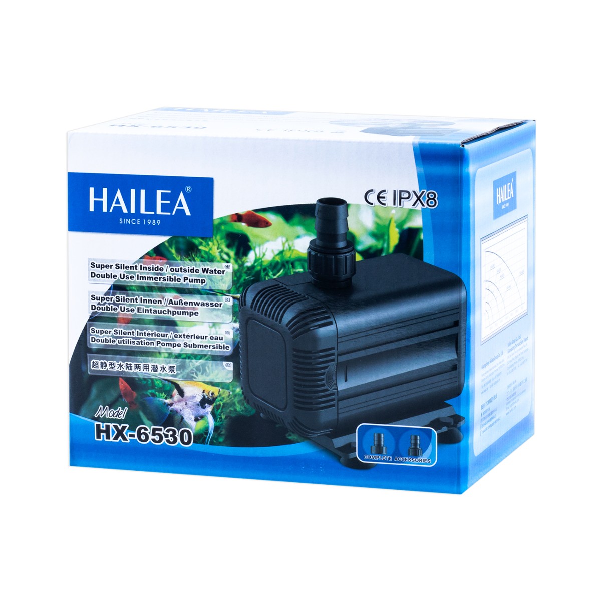 HX-6530 to wydajna pompa, która może być wykorzystywana jako pompa zwrotna lub cyrkulacyjna. Pompy można stosować zarówno w akwariach morskich, jak i słodkowodnych. Pompa może pracować zarówno w zanurzeniu jak również poza wodą. Pompa posiada solidną, wzmocnioną obudowę, odporną na kwasy, zasady i korozję. Pompa posiada oś ceramiczną, na której osadzony jest wirnik dzięki czemu charakteryzuje ją cicha i bezawaryjna praca. Wszystkie te cechy sprawiają, że pompy HX-65XX to rewelacyjne, wielofunkcyjne, niezawodne urządzenia.