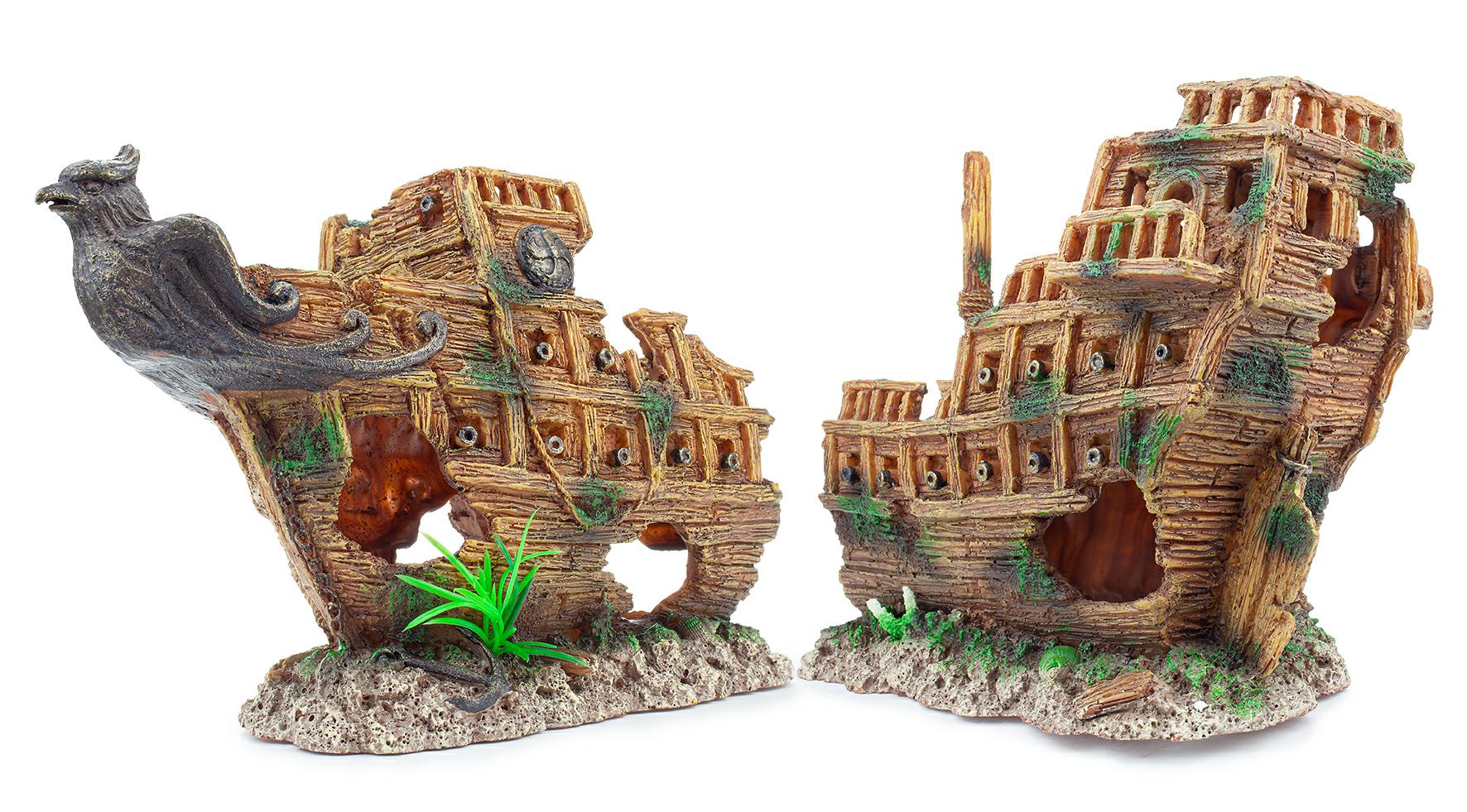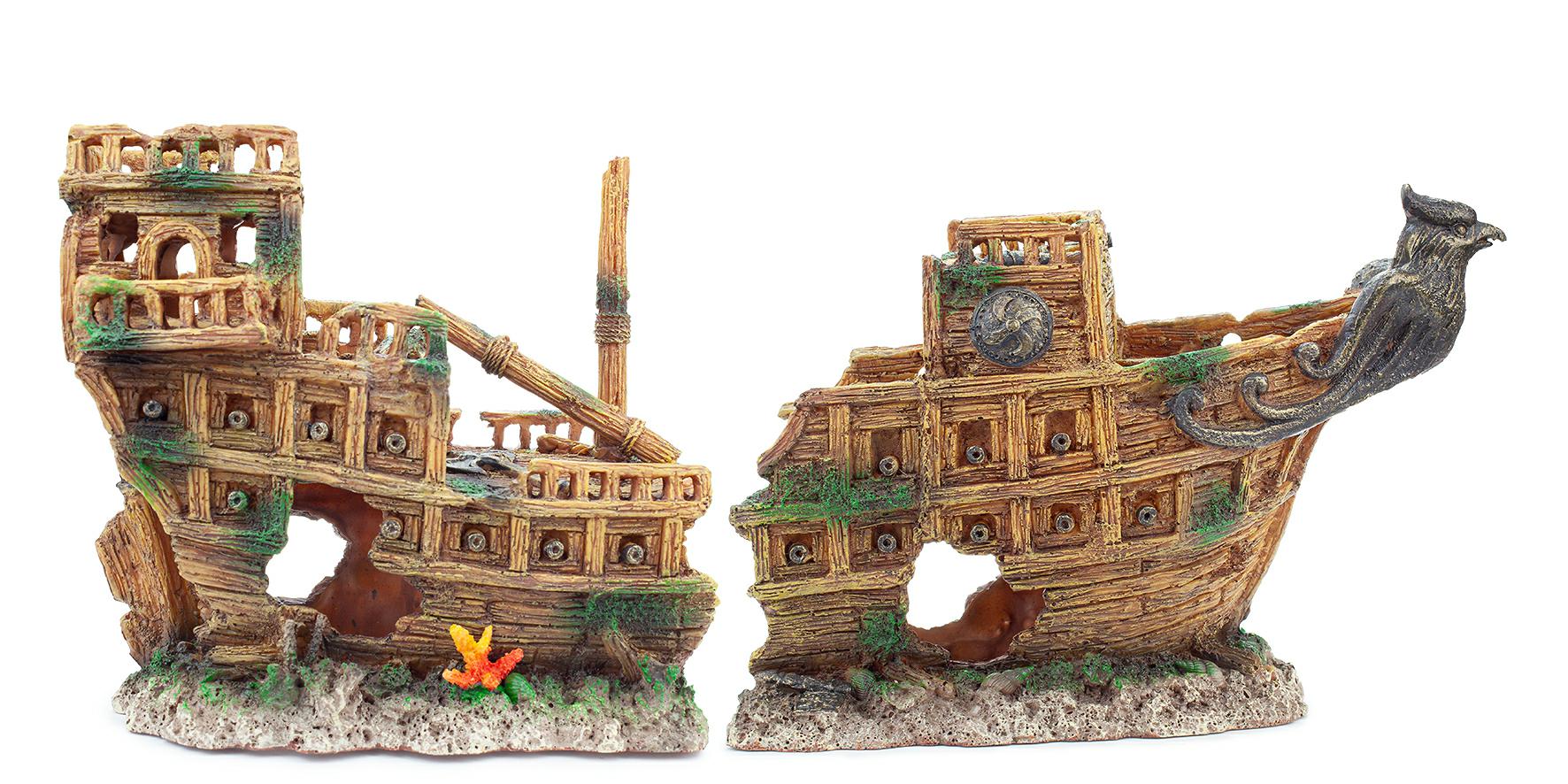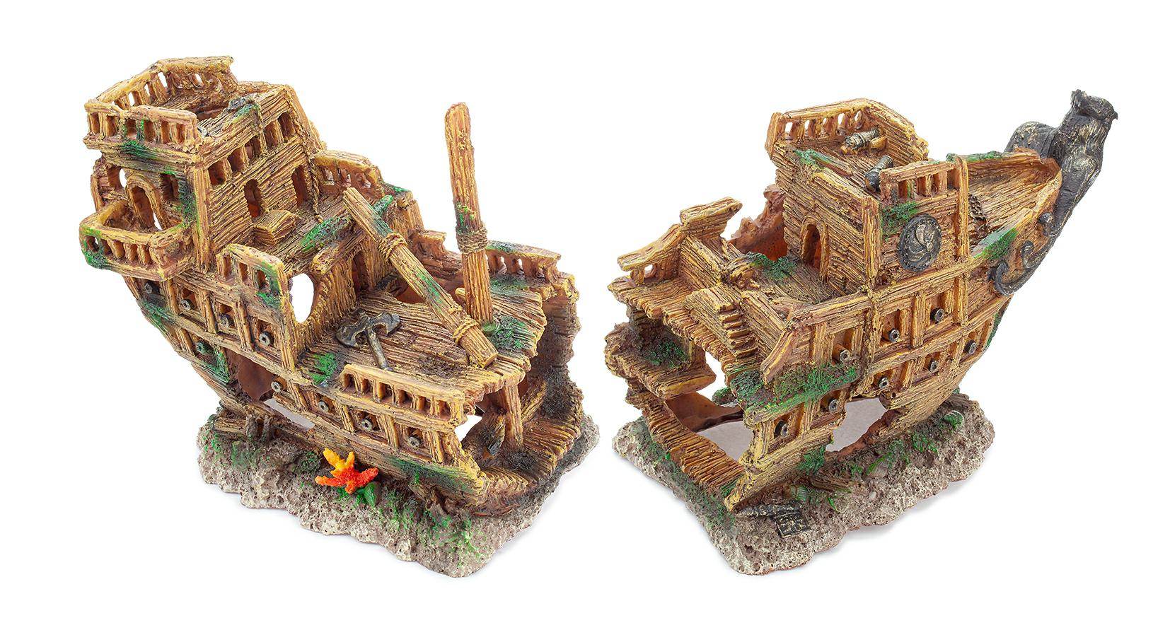Ozdoba akwariowa wykonana z łatwo tonącego i bezpiecznego dla ryb, oraz innych zwierząt wodnych, poliestru.