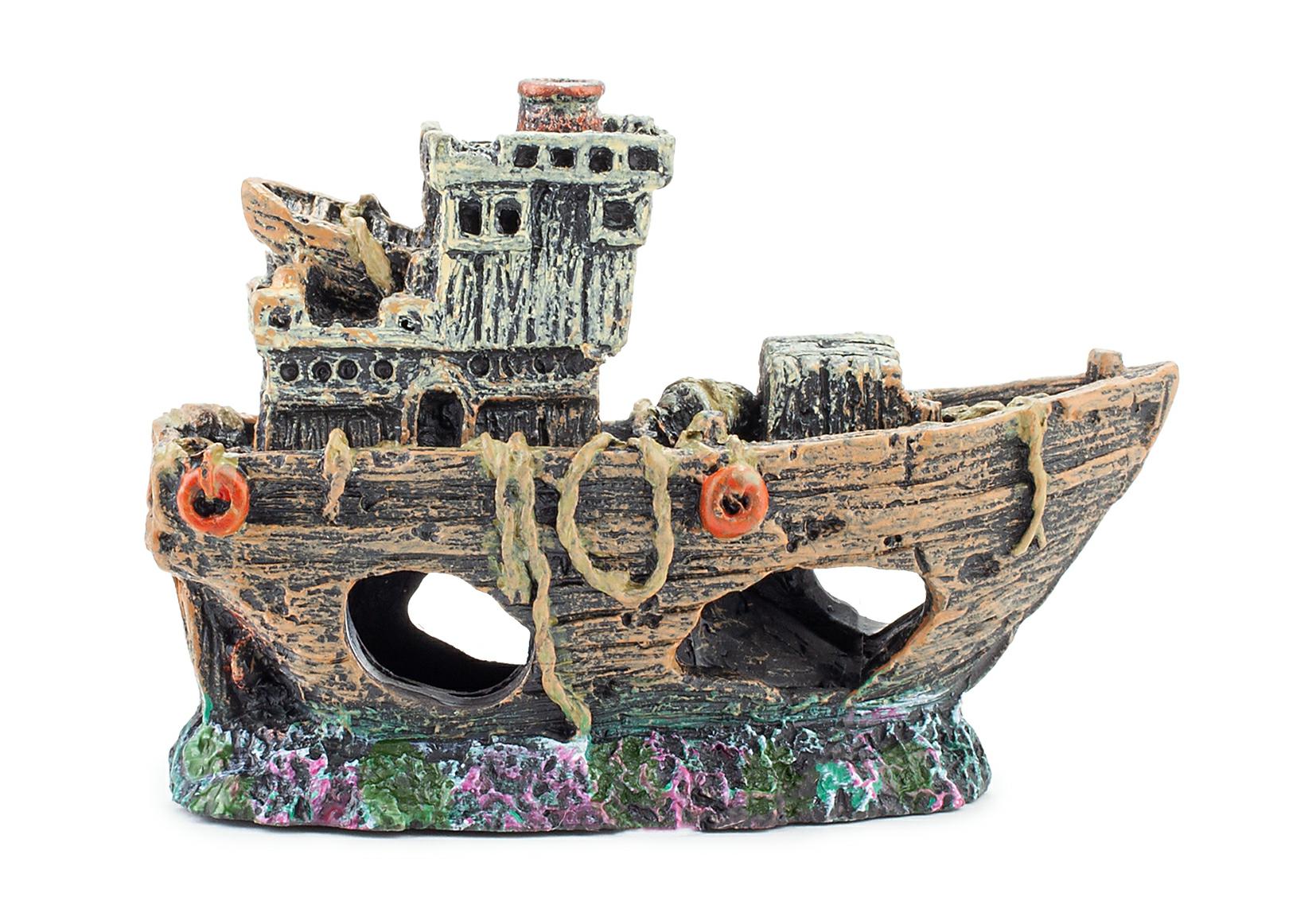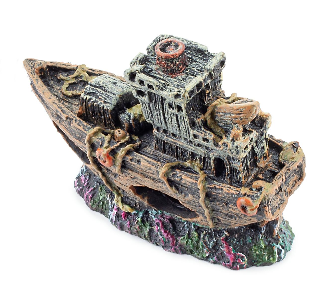 Ozdoba akwariowa wykonana z łatwo tonącego i bezpiecznego dla ryb, oraz innych zwierząt wodnych, poliestru.