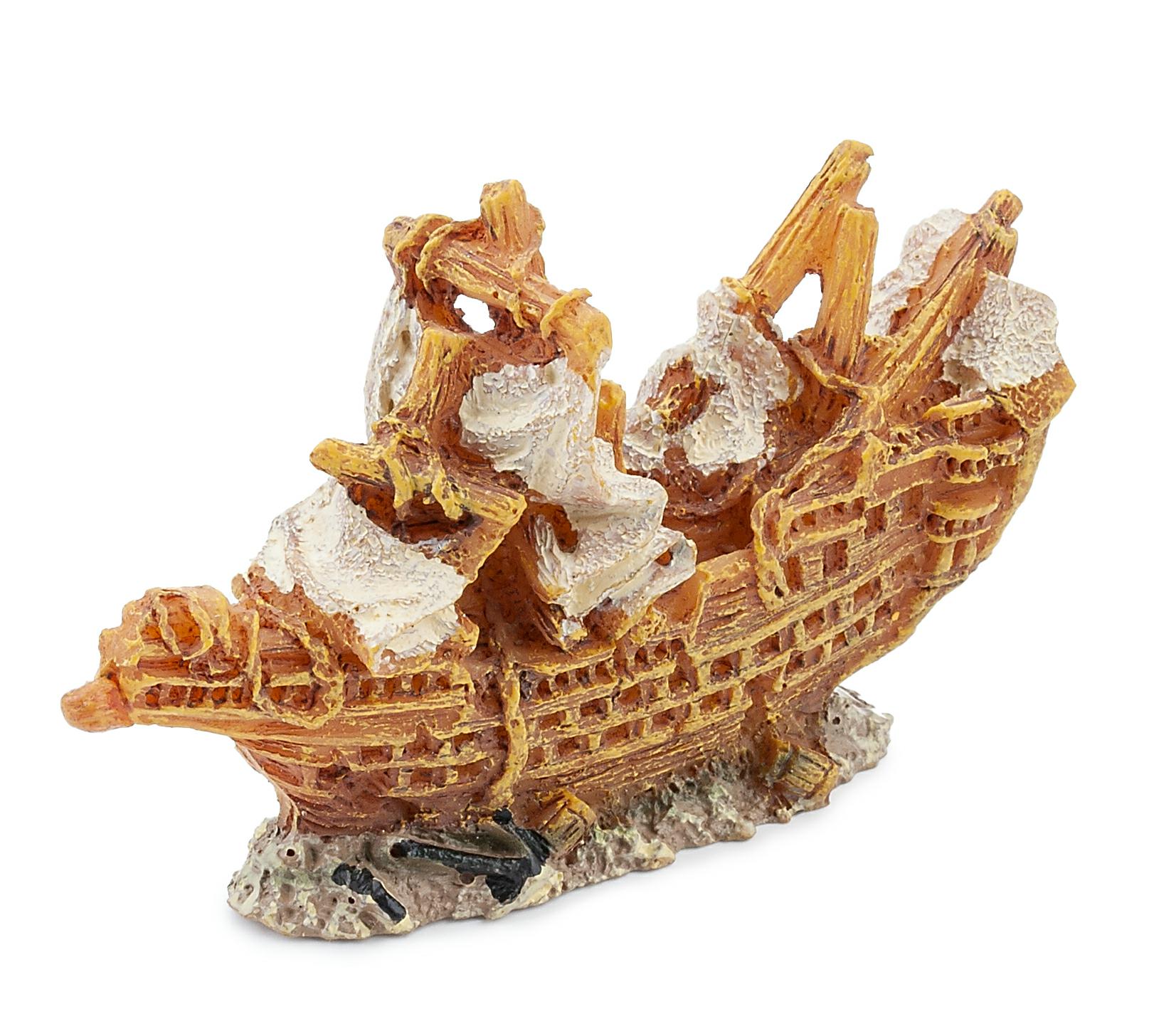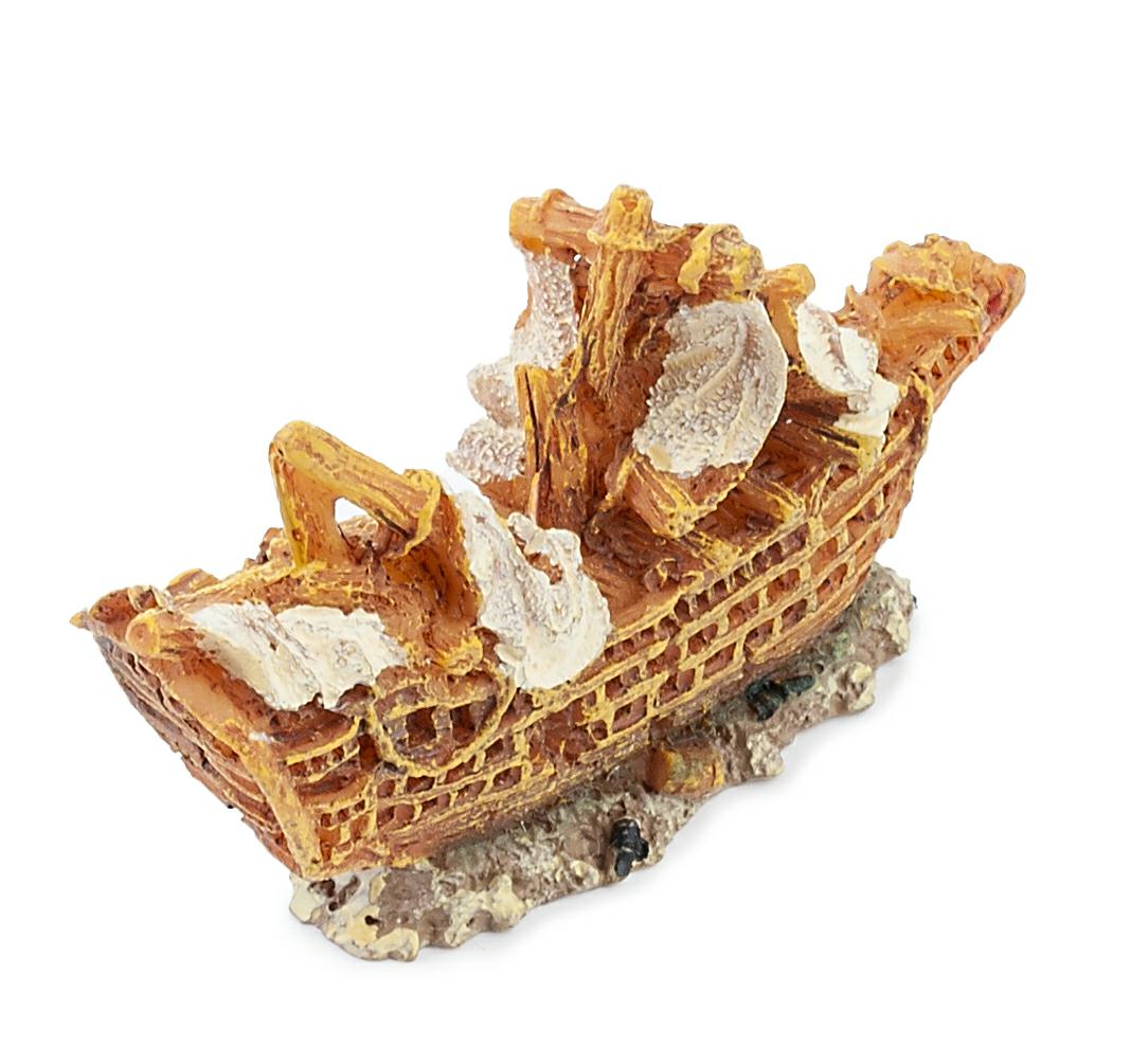 Ozdoba akwariowa wykonana z łatwo tonącego i bezpiecznego dla ryb, oraz innych zwierząt wodnych, poliestru.