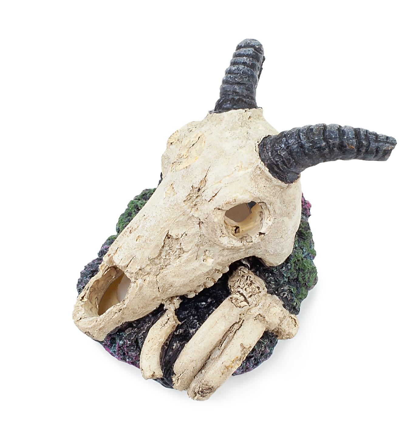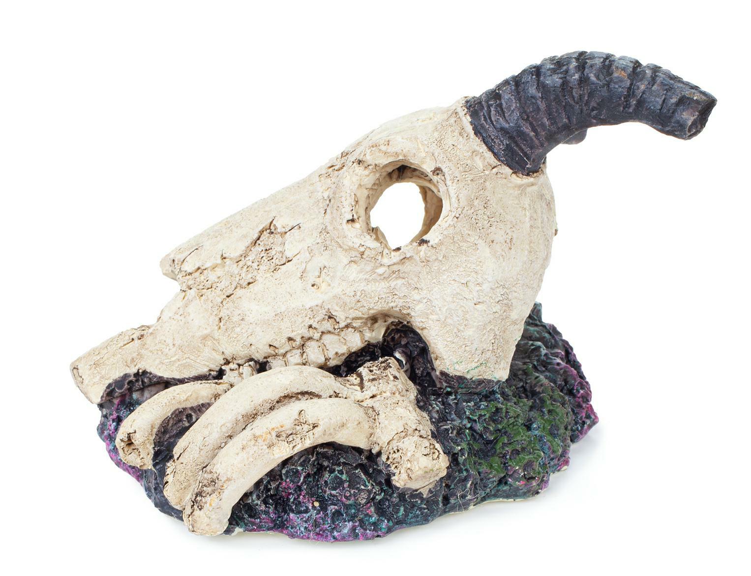 Bardzo realistyczna ozdoba w kształcie czaszki, nadająca się zarówno do akwariów, jak i terrariów.