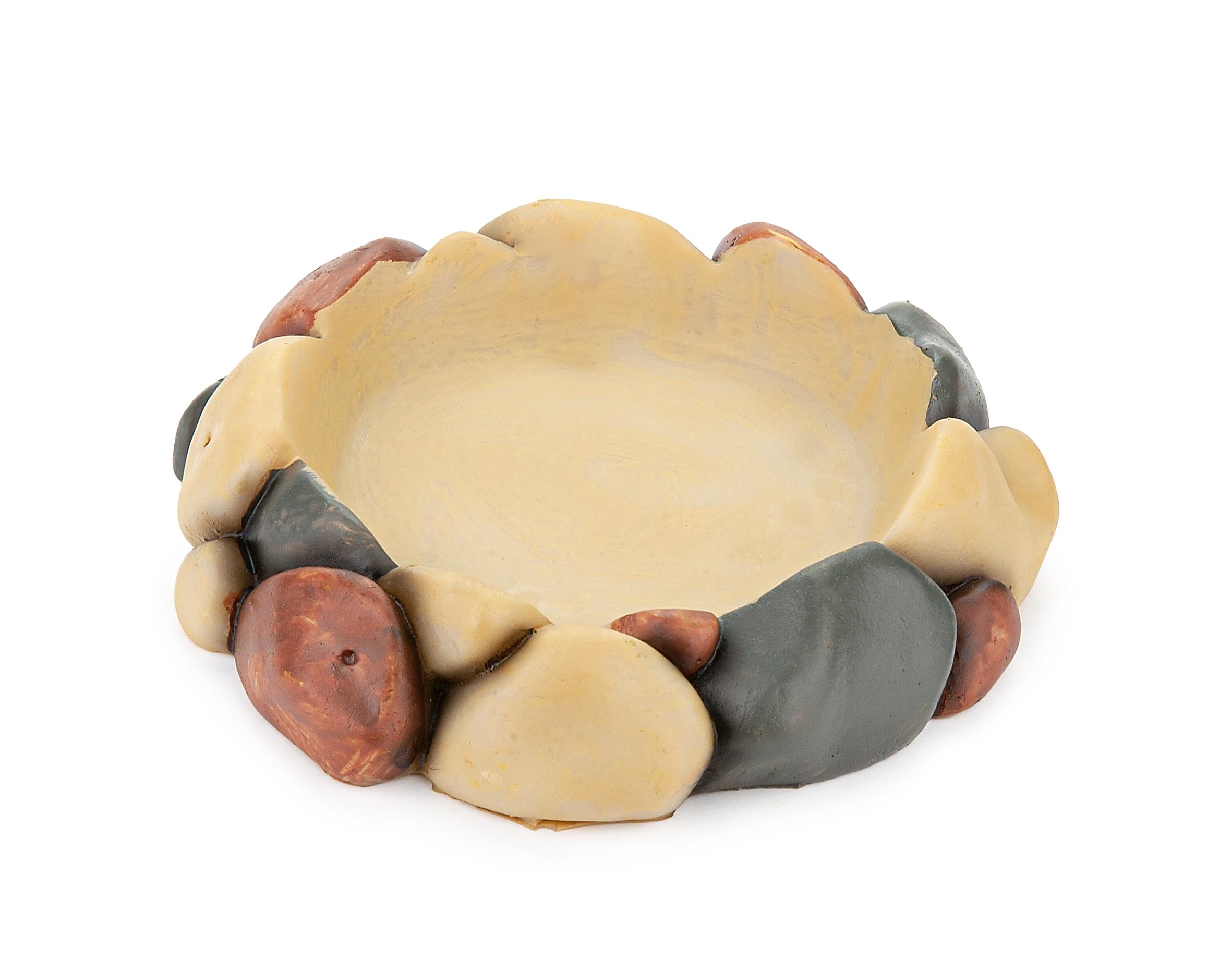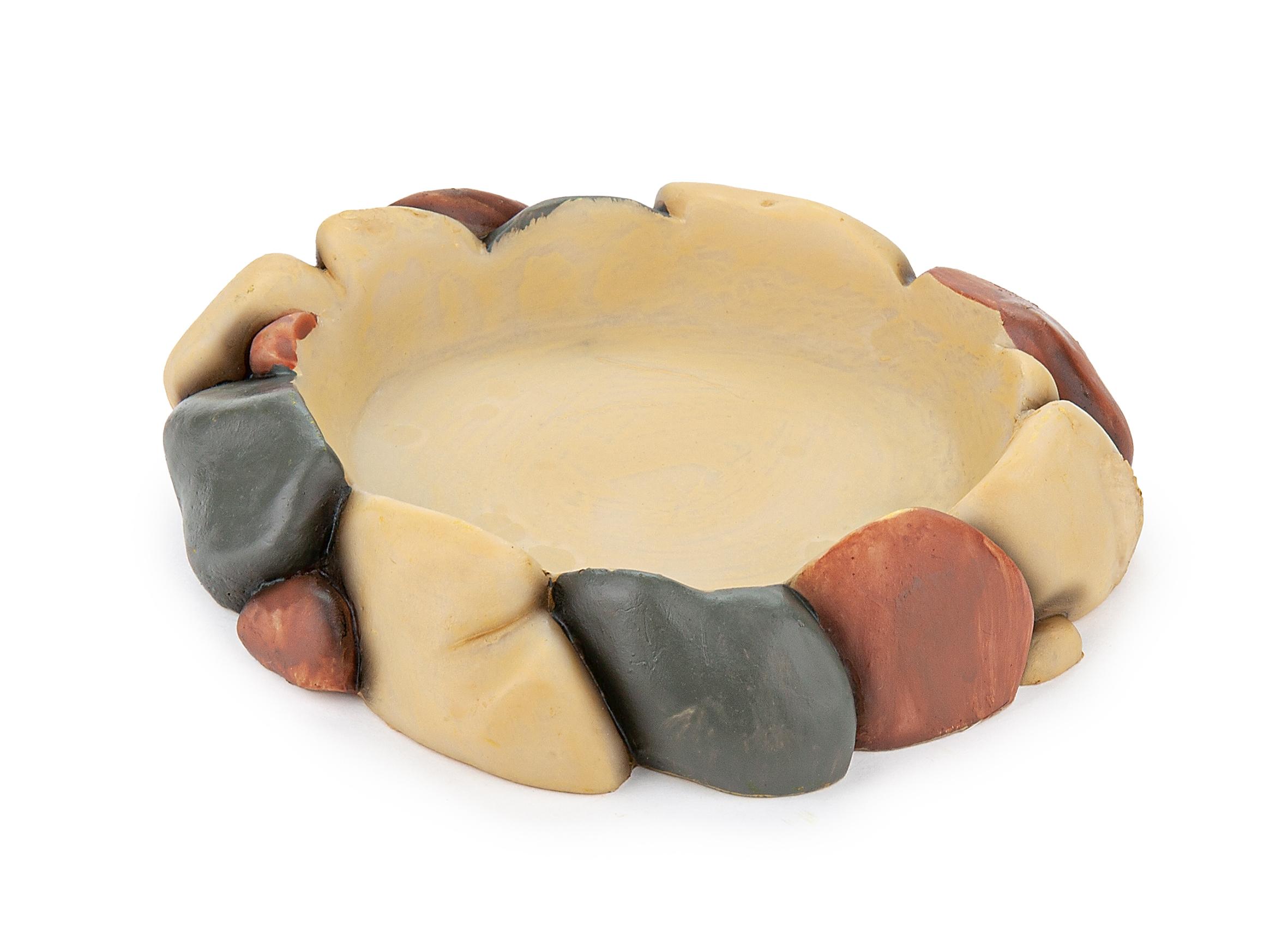 Estetycznie wykonana miska do terrarium stylizowana na kolorowe kamienie, świetnie wtapia się w otoczenie aranżowane na naturalne środowisko.