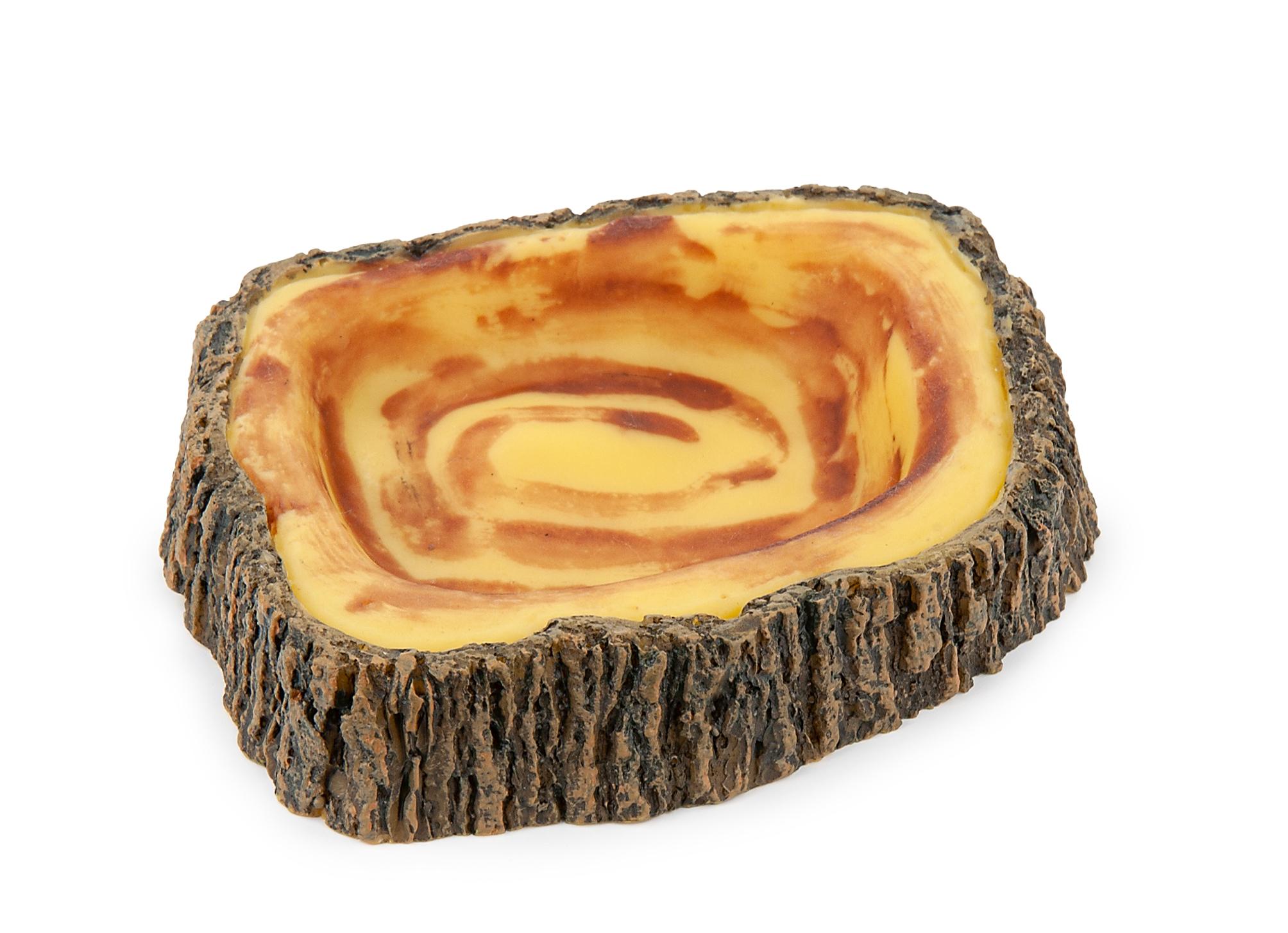 Estetycznie wykonana miska do terrarium stylizowana na pień drzewa, świetnie wtapia się w otoczenie aranżowane na naturalne środowisko.