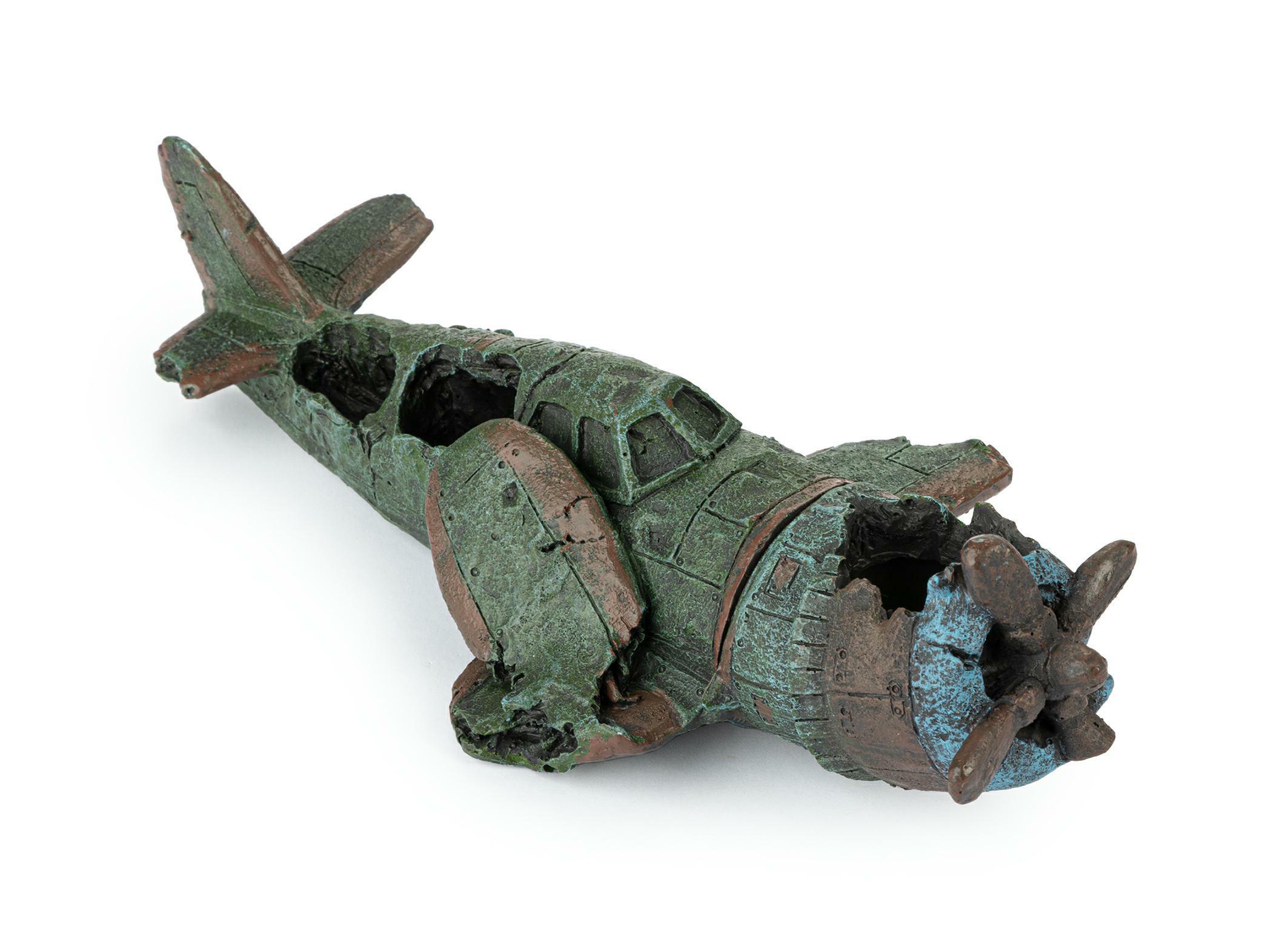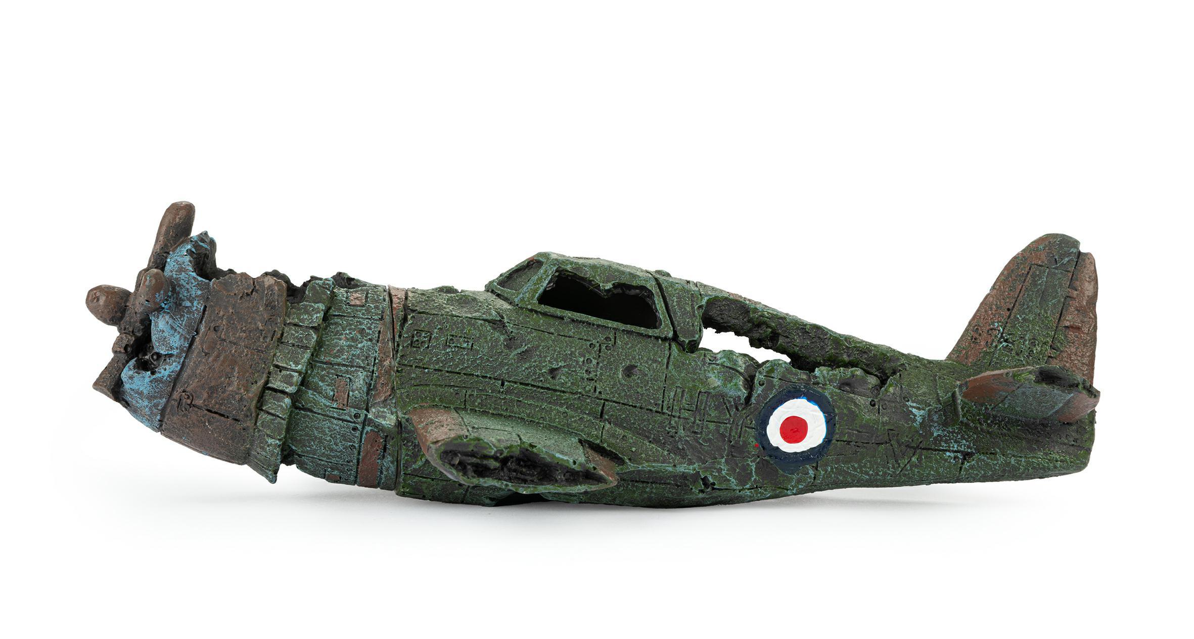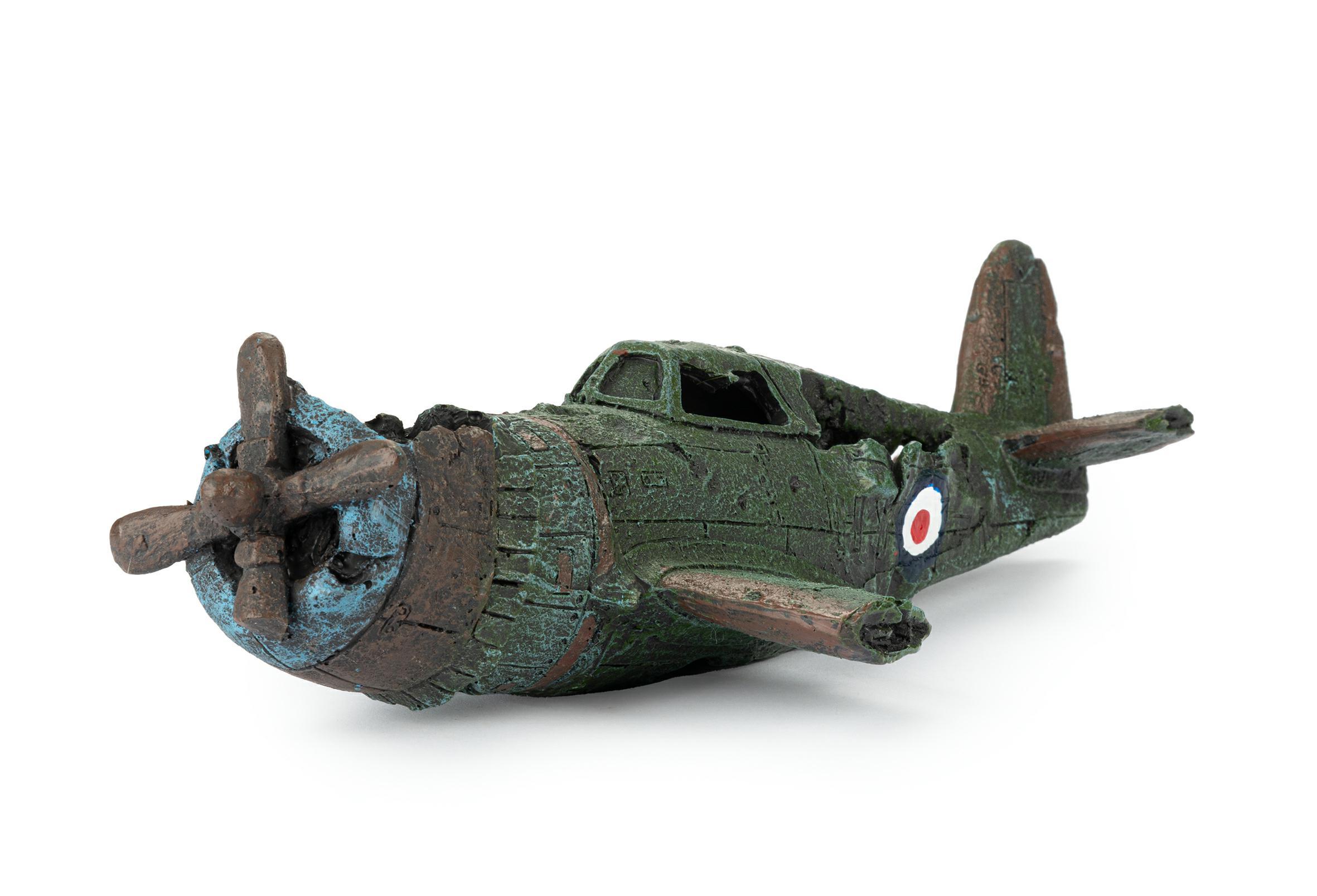 Piękna ozdoba przedstawiająca samolot z II wojny światowej, stworzona z myślą o miłośnikach akwarystyki oraz lotnictwa! Potrafi urozmaicić każdą aranżację tworząc niesamowity klimat w zbiorniku. Daje schronienie rybom w postaci cienia, oraz stanowi doskonałą kryjówkę. Samolot składa się z dwóch części, łączących się przez szybę za pomocą magnesu. Ozdoba akwariowa wykonana z łatwo tonącego i bezpiecznego dla ryb, oraz innych zwierząt wodnych, poliestru.