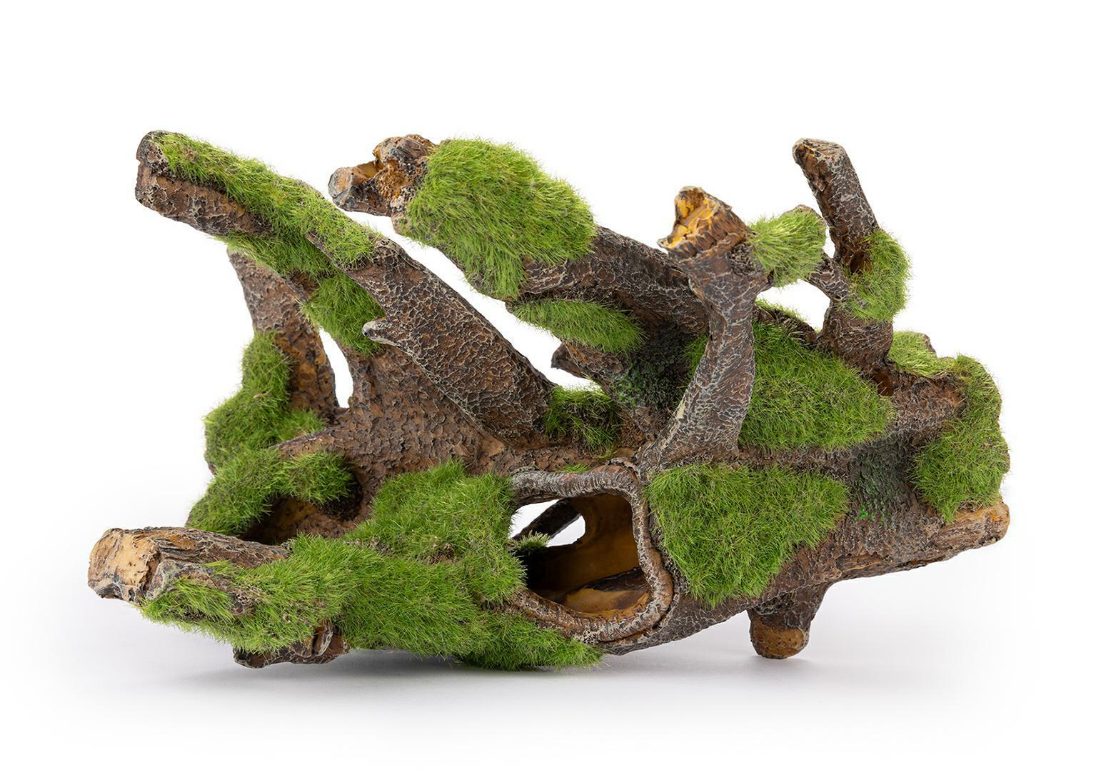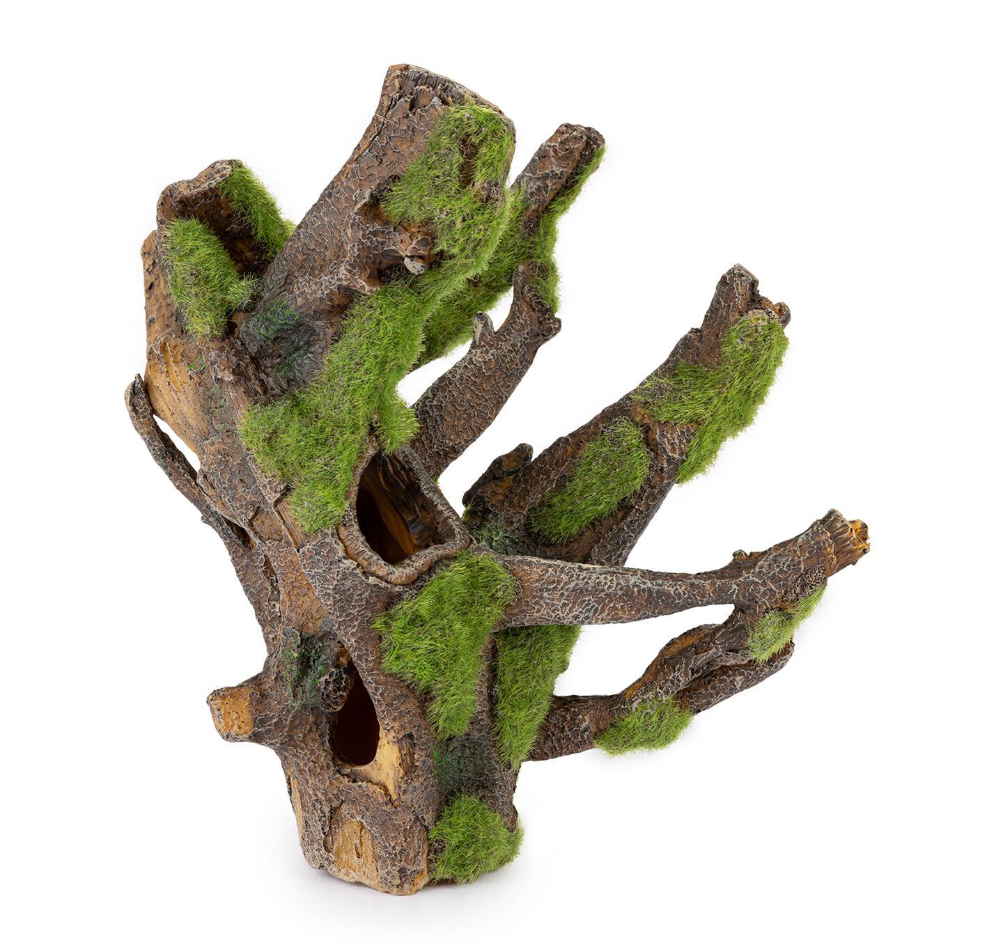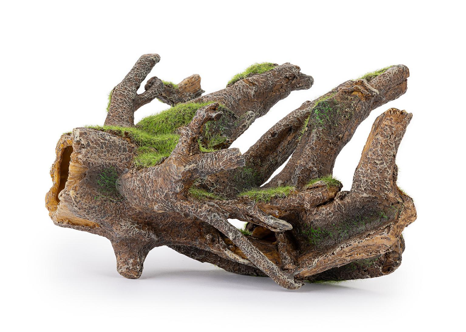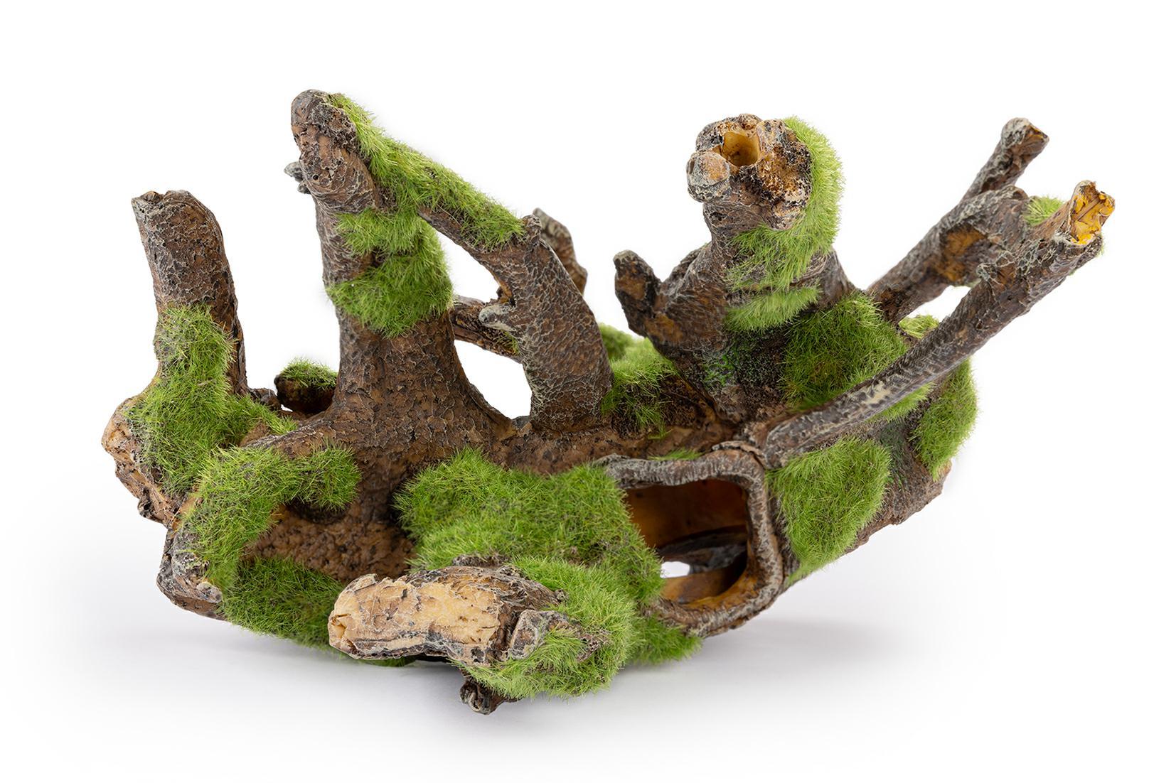 Ozdoba, stworzona z myślą o miłośnikach akwarystyki! Potrafi urozmaicić każdą aranżację tworząc niesamowity klimat w zbiorniku. Idealnie nadaje się do małych akwariów typu “kostka” 30x30x30. Daje schronienie rybom w postaci cienia, oraz stanowi doskonałą kryjówkę. Korzeń pokryty jest sztucznym mchem, dającym naturalny efekt. Ozdoba akwariowa wykonana z łatwo tonącego i bezpiecznego dla ryb, oraz innych zwierząt wodnych, poliestru.