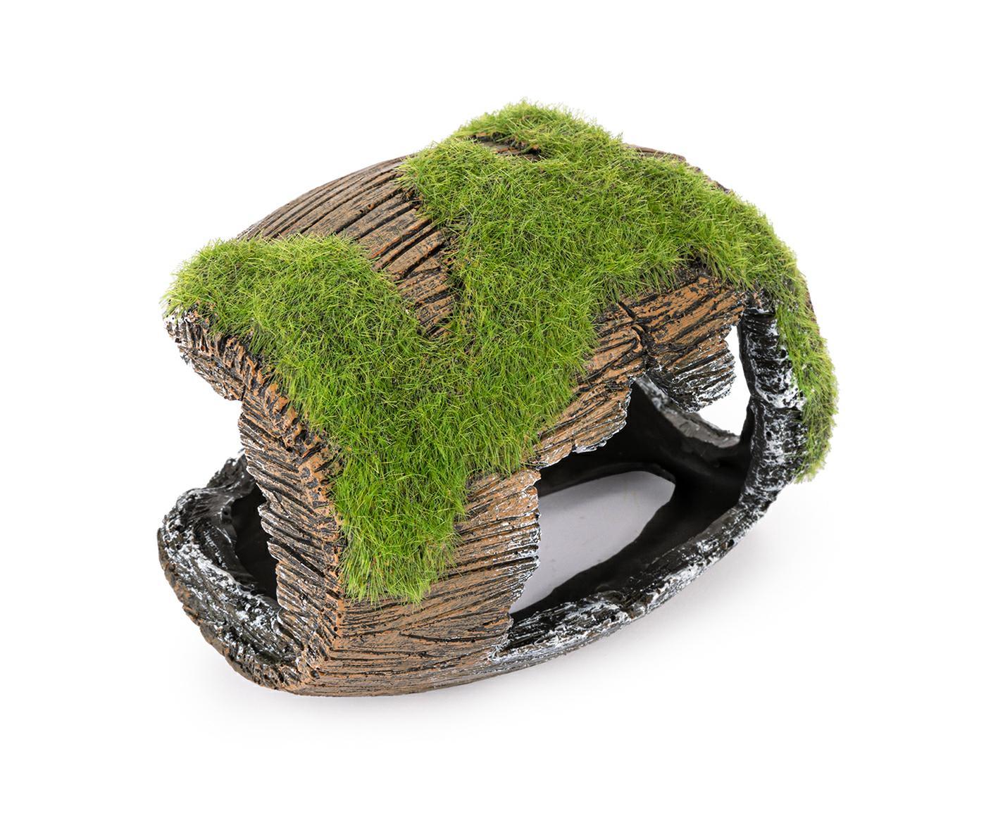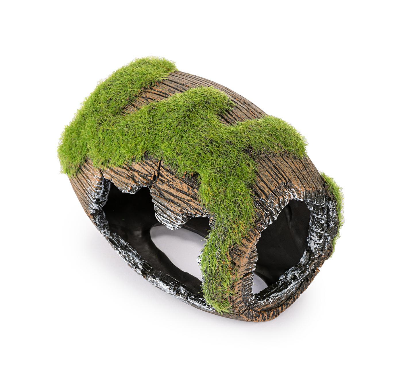 Ozdoba, stworzona z myślą o miłośnikach akwarystyki! Potrafi urozmaicić każdą aranżację tworząc niesamowity klimat w zbiorniku. Daje schronienie rybom w postaci cienia, oraz stanowi doskonałą kryjówkę. Beczka pokryta jest sztucznym mchem, dającym naturalny efekt. Ozdoba akwariowa wykonana z łatwo tonącego i bezpiecznego dla ryb, oraz innych zwierząt wodnych, poliestru.