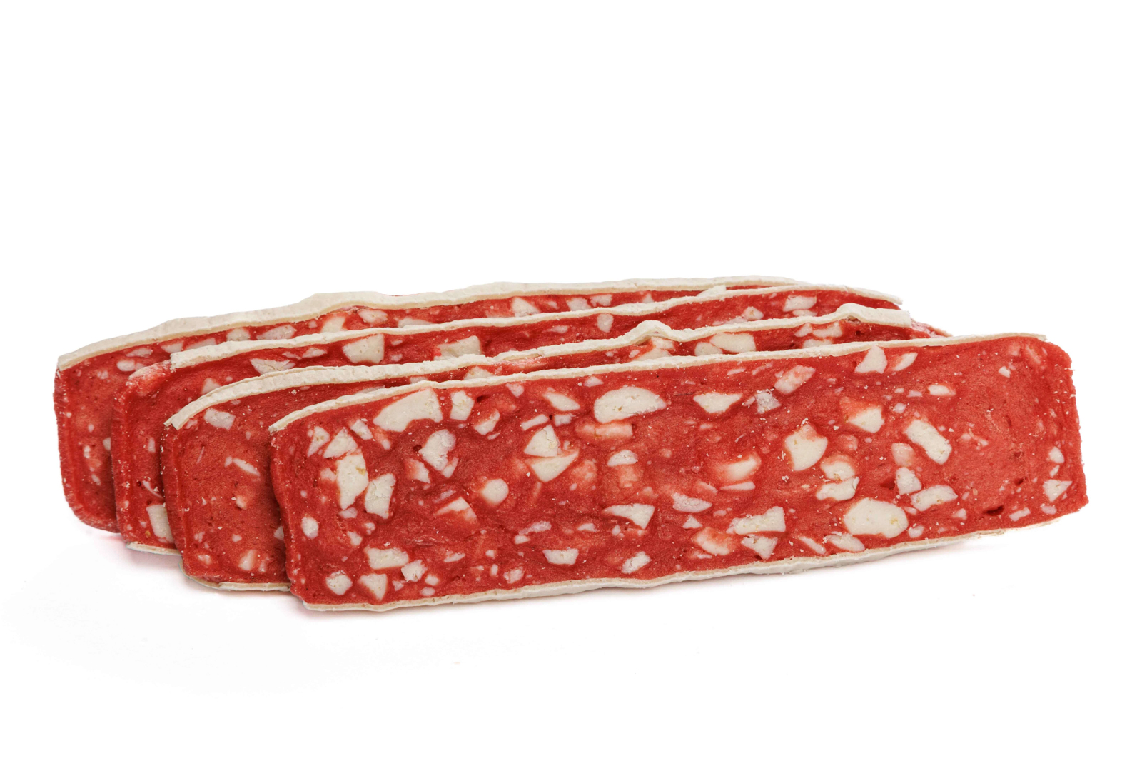 Dzięki miękkiej i elastycznej konsystencji, Salami Sandwich świetnie sprawdzi się jako nagroda treningowa lub smakołyk między posiłkami. Czerwono-biała kolorystyka i kształt prawdziwego salami sprawiają, że produkt wygląda niezwykle apetycznie, a jego wyjątkowa struktura przyciąga uwagę psa i zachęca do gryzienia.