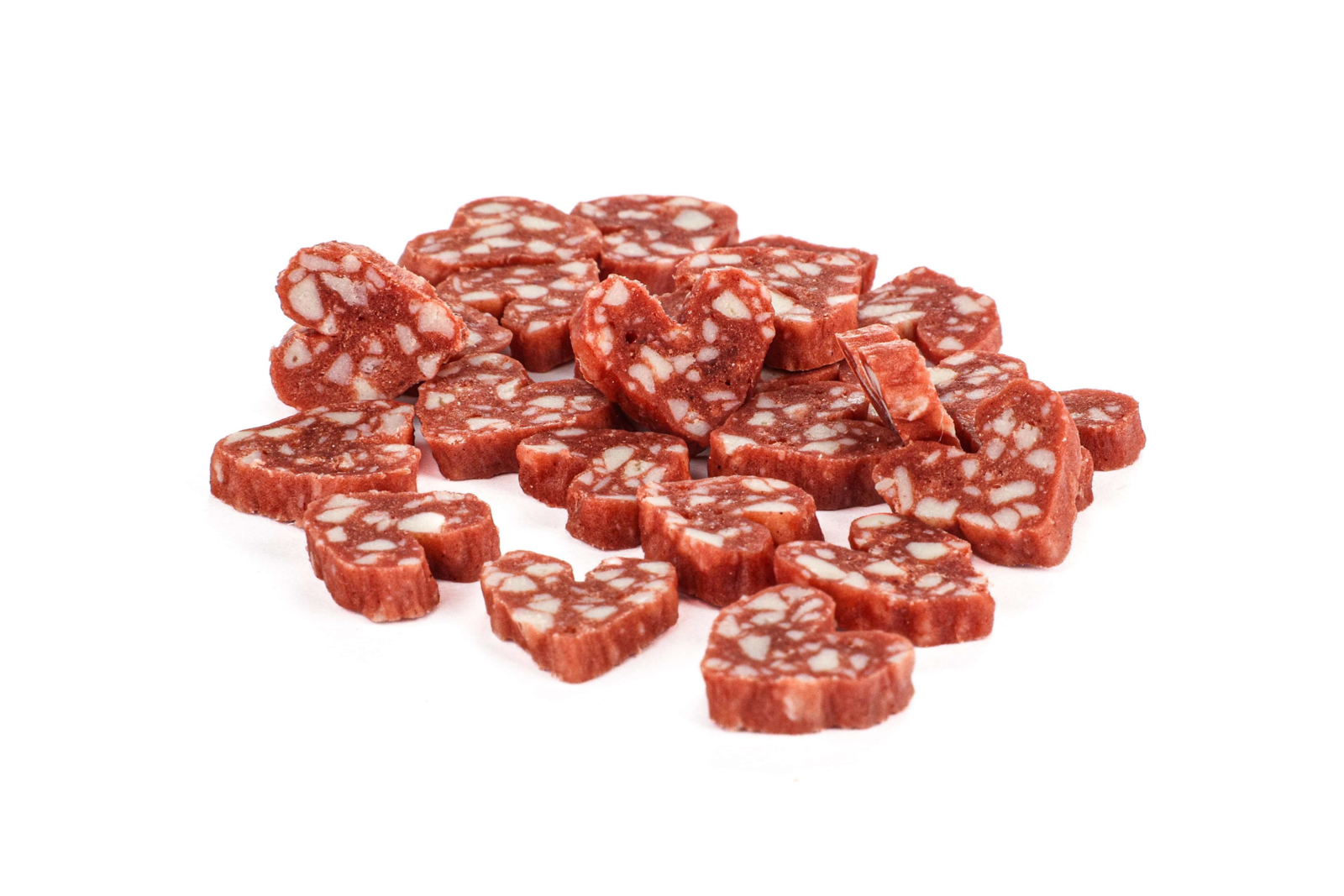 Dzięki miękkiej, ale jednocześnie zwartej strukturze, serduszka doskonale sprawdzą się jako nagradzająca przekąska lub smakołyk między posiłkami. Ich niewielki rozmiar (ok. 1 cm) sprawia, że są łatwe do gryzienia i idealne także dla małych psów. Autentyczny wygląd prawdziwego salami czyni je jeszcze bardziej atrakcyjnymi dla pupila!