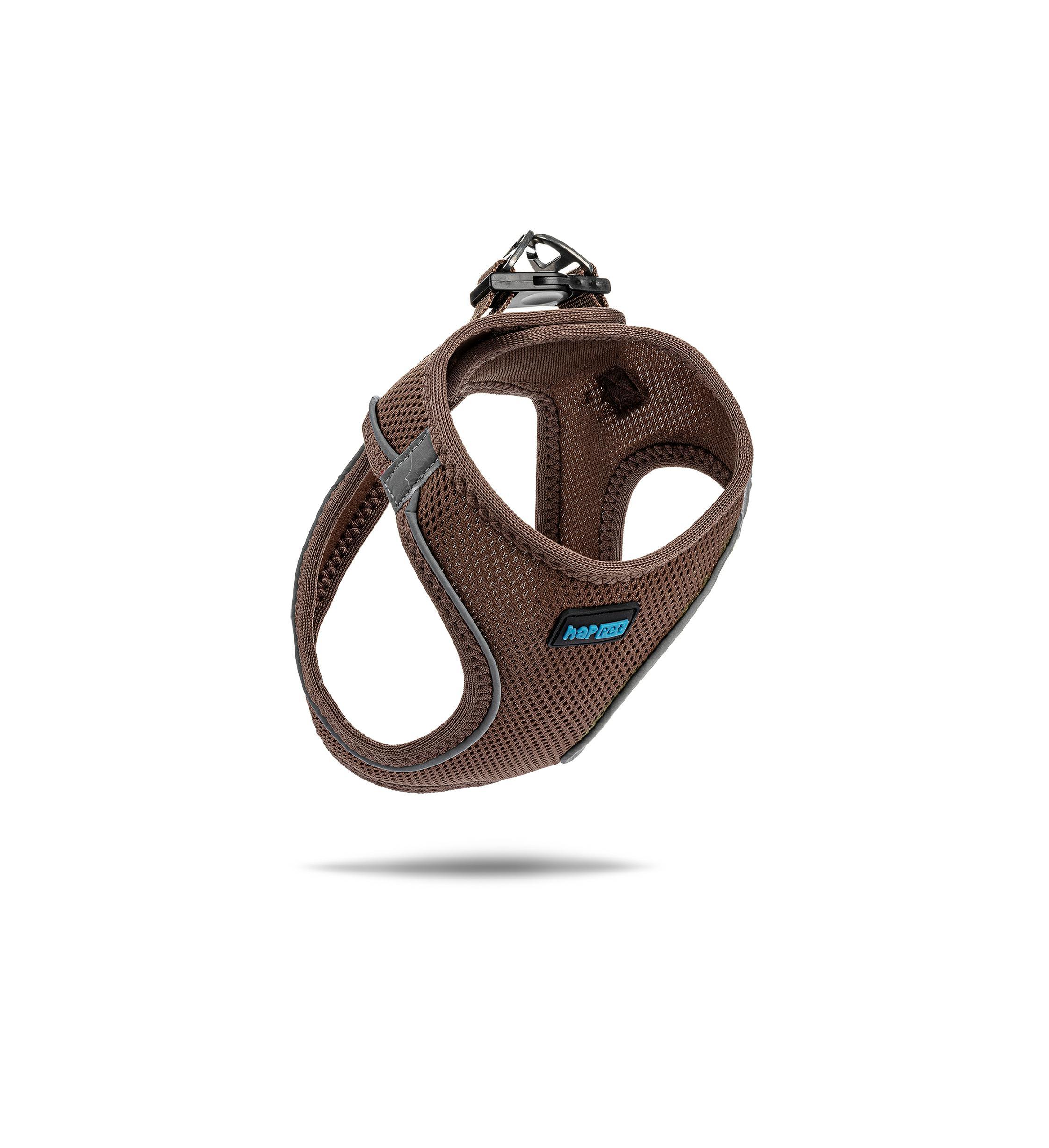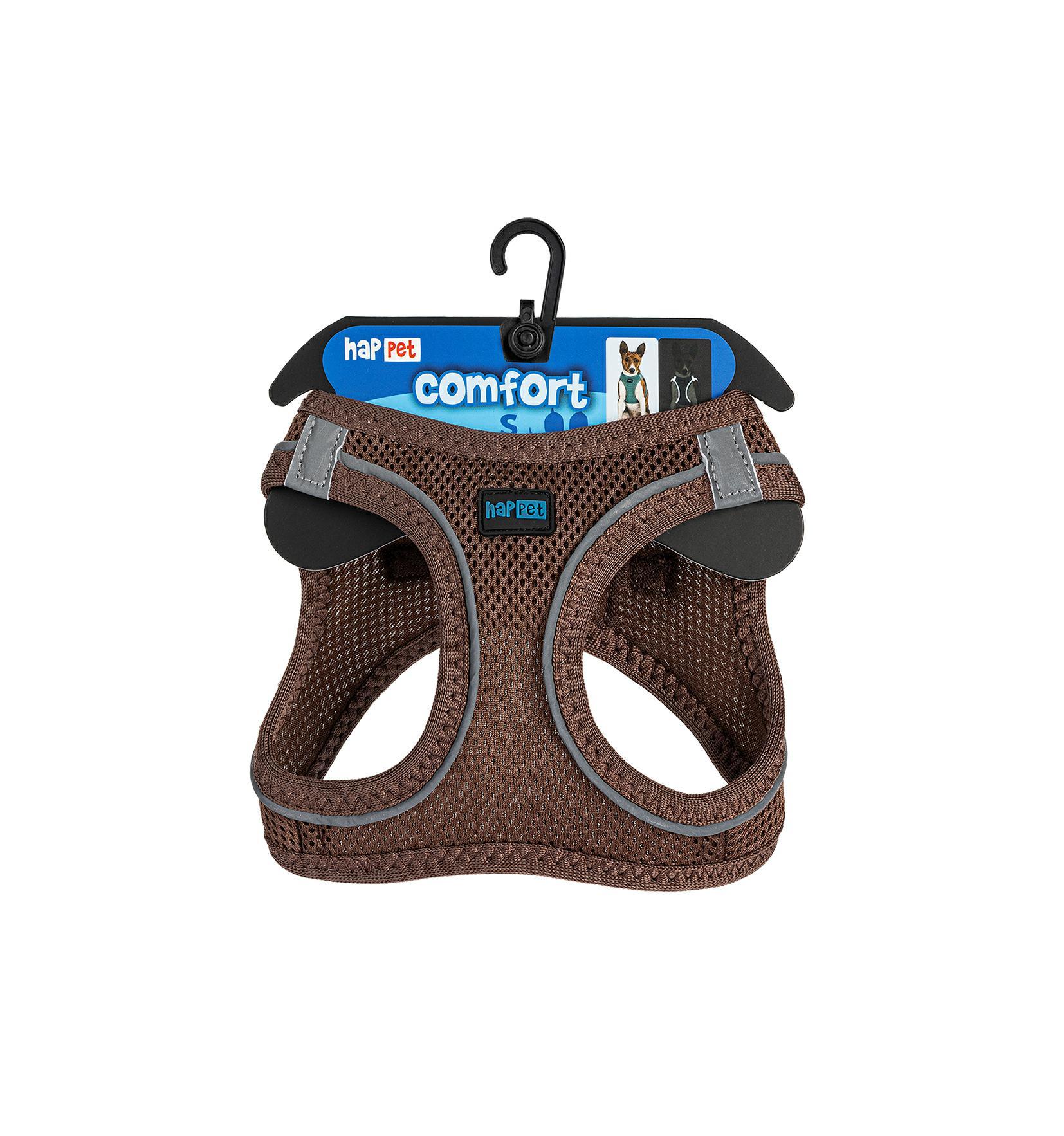 Szelki Air Comfort posiadają obręcz szyjną i piersiową z łączeniem na klatce piersiowej i plecach, zostały wykonane z solidnego, sztywnego materiału przepuszczającego powietrze, z odblaskowymi elementami. Zapinane są dwuetapowo, na plastikową klamrę oraz rzep.